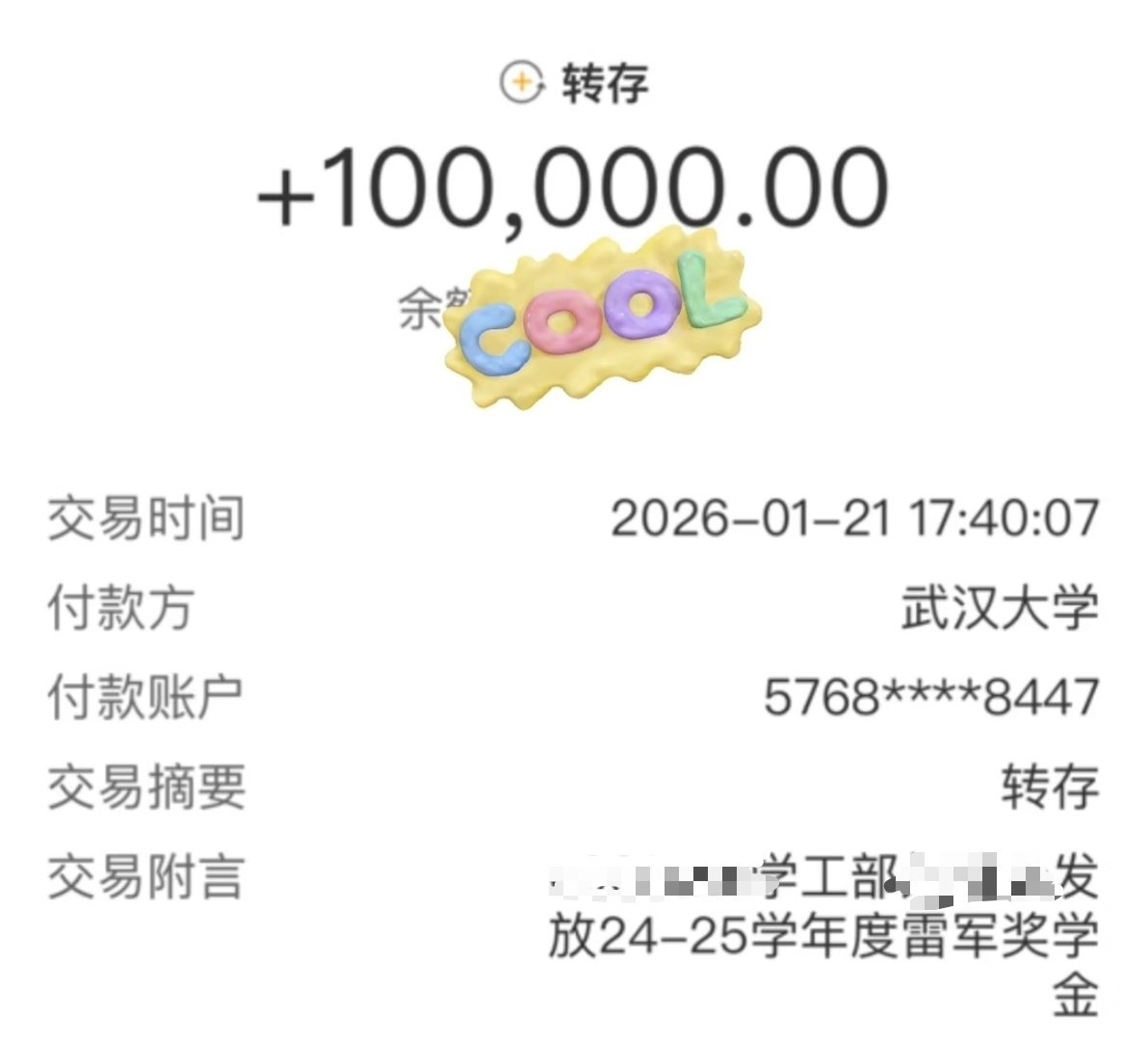 今年的,有学生拿到了雷军奖学金,100000哦,一笔不小的金额,羡慕了,优秀企业家和上进的学生, 这才是对有志青年最好的激励!
