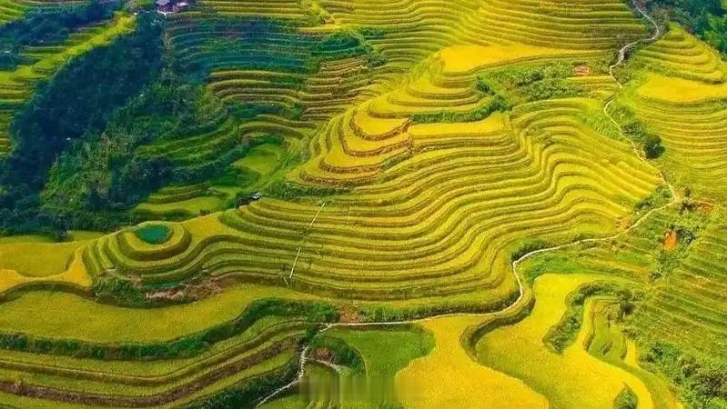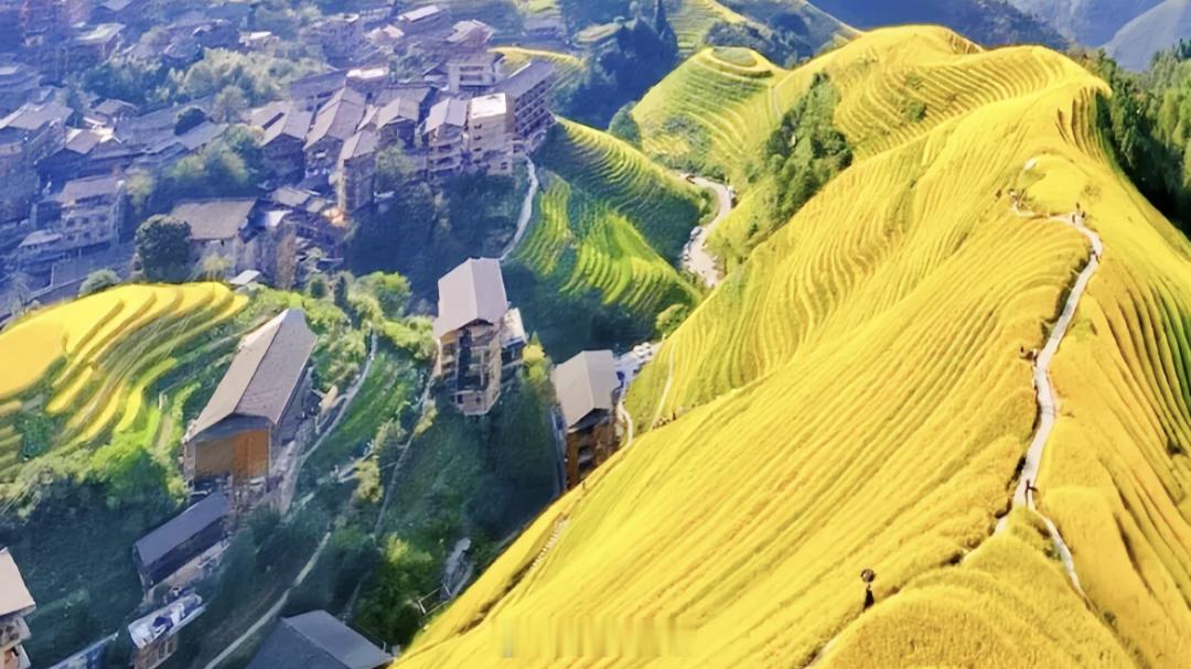 生活手记 终于来到了传说中的龙脊梯田! 眼前层层叠叠的金黄梯田,从山脚一直盘绕到山顶,线条行云流水,规模磅礴壮观,真的像一幅巨大的抽象画。秋日阳光洒下,稻穗沉甸,整片山峦仿佛披上了金色的铠甲,随手一拍都是绝美大片。这里不仅是风景,更是凝聚了千年农耕智慧的“大地诗行”。