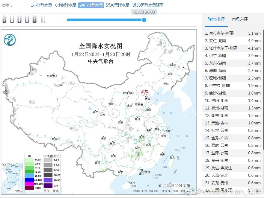 【两轮降水过程】昨晚到今天,我国降水稀少。未来到1月底,会看到两轮降水过程,自西