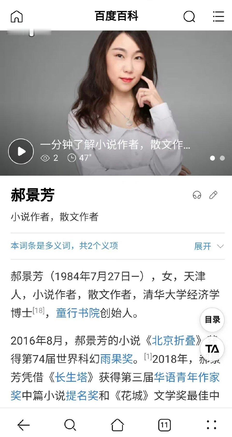 北京折叠的作者是郝景芳,她之前还和美国原财长耶伦吃饭