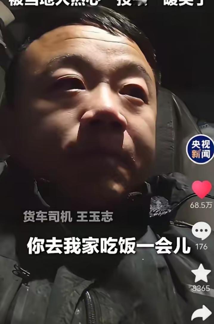 "火到央视了!"山东一男子开大货车,因大雪被困在河南,一人在车上睡觉,突然有人敲门,只见一大姐说:你一会上我家吃饭吧!男子不好意思,便婉拒了,说自己车上有方便面,大姐却热情的说:那我做好烩面给你端过来。男子更不好意思了,可接下来的遭遇,让他一大老爷们瞬间红了眼圈,再也绷不住了。 2026年1月19日,山东货车司机王玉志驾着满载货物的大车驶入河南南召,没曾想被突降的暴雪拦在了路上。 坡路打滑、前车追尾,原本顺畅的旅途戛然而止,他只能把车挪到安全地带,摆上警示标志,窝在冰冷的驾驶室里打算凑活一阵。 大姐端着一碗热气腾腾的羊肉烩面过来时,碗底还卧着两个荷包蛋。她弟弟也是开大车的,常年跑长途,她太清楚冰天雪地里啃方便面的滋味。王玉志接过碗,刚吃第一口,眼泪就掉进了汤里。 这还没完。邻居一家三口遛弯路过,专门敲他车门问缺不缺热水;小超市老板硬拉他进屋,说晚上给炒俩菜;第二天一早,王玉志把王大丽家门口的雪扫得干干净净,人家却已经备好早饭在等他。两天时间,他吃了四顿热乎饭。 1月21日雪停后,皇后乡政府带着融雪盐来帮他脱困。王玉志发车前,王大丽塞给他一包路上吃的干粮。这段视频发到网上,播放量很快破了百万,央视也报道了这事。 跑大车十几年,王玉志习惯了遇到困难自己扛,怕家里人担心从不声张。这次他却专门拍了视频,就想让所有人知道河南人有多实在。一碗烩面值不了几个钱,但在零下几度的雪夜里,那份把陌生人当自家人的热乎劲儿,比啥都珍贵。现在网上总说人情冷漠,可你看这冰天雪地里,一个普通河南大姐就能让山东汉子哭成泪人。这世道从来不缺温暖,缺的是愿意伸出手的人。