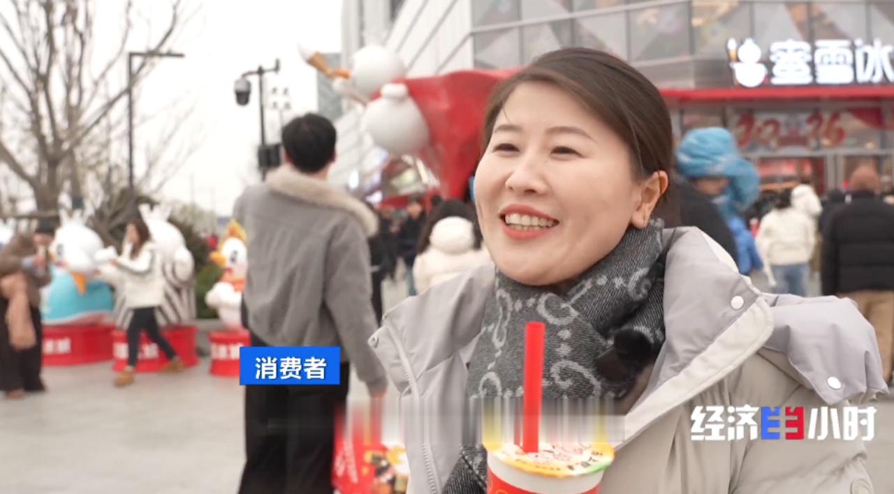 郑州东站这家茶饮旗舰店门前摆满了行李箱,门外的队伍排出去十几米长。这里产品多,价格实惠,主打的就是“性价比”。2.5元的甜筒,4元钱的柠檬水,9.9元的毛绒玩具,让消费者们大呼实惠。