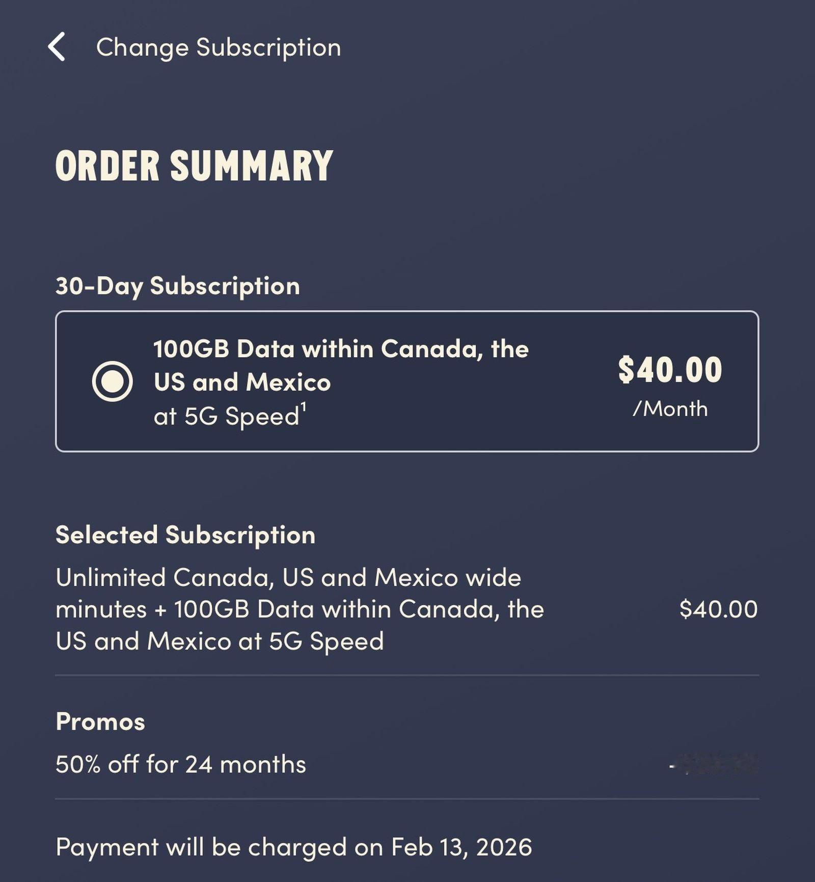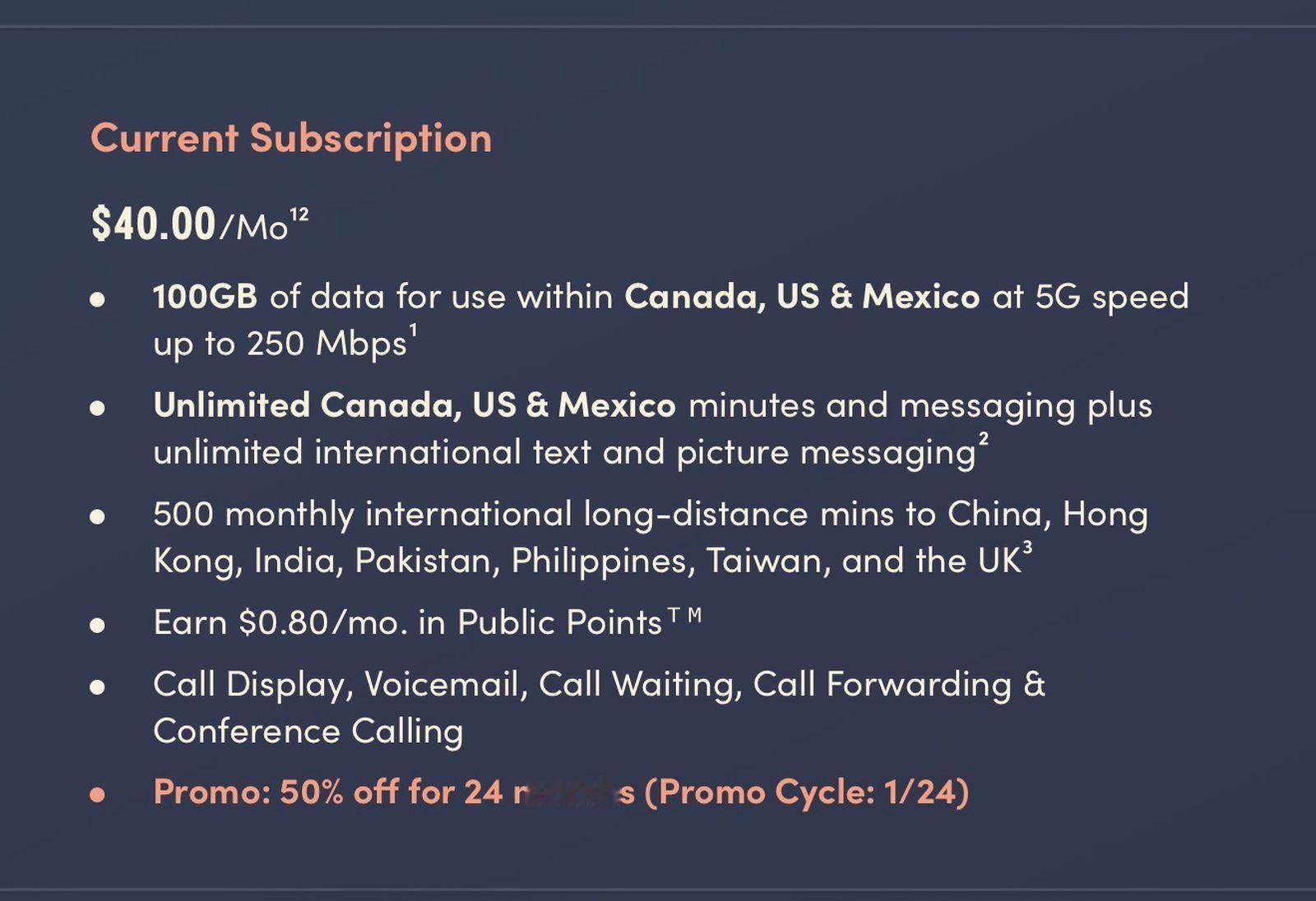 【Public Mobile 在加拿大推出每月 20 加元即可享受高达 100GB 5G 流量的优惠】加拿大运营商 Public Mobile 推出限时闪购活动,5G 加拿大—美国—墨西哥套餐两年内可享 50% 折扣。以下是新客户在 1 月 26 日前可享受的折扣套餐,每个套餐均包含无限通话和短信:每月只需 20 美元即可享受 60GB 的 5G 数据流量(原价每月 40 美元)每月只需 25 美元即可获得 80GB 的 5G 数据流量(原价每月 50 美元)每月只需 30 美元即可享受 100GB 的 5G 数据流量(原价每月 60 美元)Public Mobile 表示,这些折扣套餐仅限新用户激活,但现有用户也能享受这些优惠价格。在 Public Mobile app 中,点击“管理订阅”的“更改订阅”,然后选择每月 40 美元的 100GB 套餐。如果你切换到该套餐,Public Mobile 目前提供 24 个月的 50% 折扣,这意味着你每月只需 20 美元即可获得 100GB 流量。在限定时间内,Public Mobile 为用户提供免费 eSIM 服务。在美国和墨西哥漫游时,你可以免费使用分配的数据流量,Public Mobile 将 5G 速度限制在最高 250 Mbps。超出分配的流量后,数据速度将降至最高 512 Kbps。Public Mobile 是一家预付费运营商,这意味着你需要预先支付每月套餐费用,无需信用审查。你可以随时取消订阅。作为 Telus 的子公司,Public Mobile 在加拿大使用 Telus 的网络。但是,在繁忙地区,Public Mobile 用户的网络优先级可能会被降低,而且信号覆盖范围会因地理位置而异。总而言之,其服务质量可能并非始终能与 Bell 或 Rogers 等主流运营商相媲美,但实际情况可能有所不同。