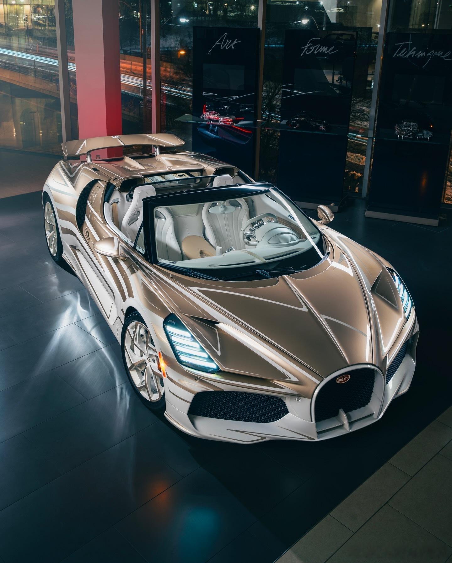 呈现“La Perle Rare”——超跑艺术的独特表达。Bugatti W16 Mistral最顶级、最专属的诠释:终极敞篷超跑,也是Bugatti标志性的W16传奇的最后一部道路车型。这款罕见的Mistral围绕定制的1,600马力四涡轮增压W16引擎打造,庆祝无与伦比的性能、非凡的工艺以及汽车豪华的勇敢精神。每一道曲线、每一个细节,以及每一次驾驭的瞬间,都是对Bugatti不懈追求完美的致敬。这不仅是一辆敞篷跑车,它是工程与设计的杰作。布加迪Mistral老纪侃车豪车超跑