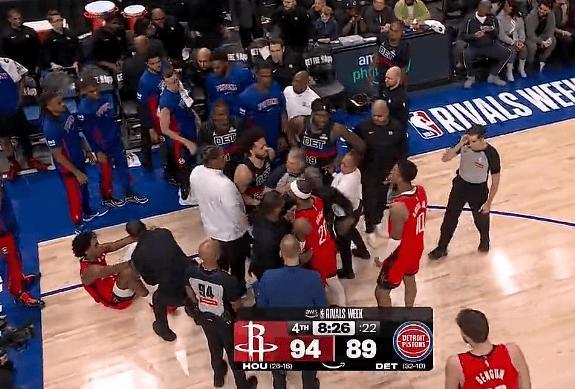 火箭、活塞为了胜利互不相让,甚至大打出手,奥本山宫殿重演。 在刚刚结束的一场NBA强强对话中,火箭凭借杜兰特的出色发挥以及全队非常高的命中率,以111-104艰难的战胜了活塞。 作为全联盟两支脾气最火爆的球队,本场比赛看点十足,甚至有人预言了本场比赛的走势,两队恐怕要剑拔弩张,大动干戈。记得上一场交锋,两队打的亦是非常不愉快。果然,比赛进行到最后关头,阿门倒地拼抢球权,史密斯喷垃圾话,双方随即纠缠到了一起。 虽然活塞现在已经更换了主场,但久负盛名的奥本山宫殿可以是大名鼎鼎,依然被很多人铭记在我。2004年,这里见证了NBA历史上最恶性的一起斗殴事件,我也有幸看了那场震惊世人的直播比赛。 时间来到2026年,活塞更换了主场,但活塞还是以前的那支活塞,脾气火爆的活塞,网友也给本场比赛命名为奥本山宫殿2.0版。