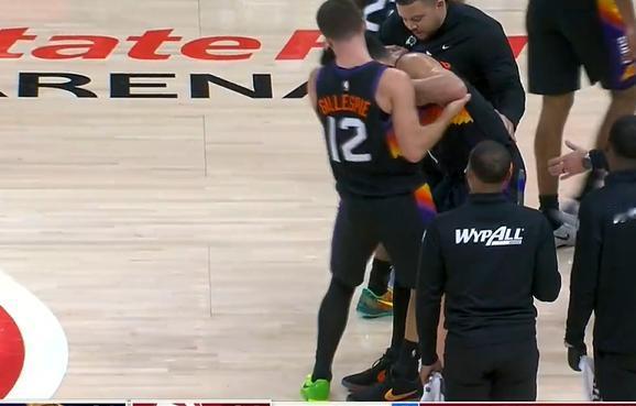 太阳本赛季要没,当家球星布克崴脚呈90度,伤情不明! 实话实说,本赛季的太阳表现不错,目前他们27胜18负排在西部第6位,距离第二的马刺差距不大,只有4个胜场。 今天太阳面对实力不强的老鹰,本以为想再接再厉,赢下对手,继续缩小与前几名球队的距离。但事与愿违,比赛来到第三节末段,布克踩到老鹰球员奥孔古的脚上,随即布克痛苦倒地。慢镜头来看,踩到奥孔古的那一刻,布克的脚踝弯曲到了90度。经过短暂休息,布克被队员扶着走回更衣室。 布克的受伤让我想起了前几天的巴特勒,不过太阳与勇士不一样,缺少巴特勒,勇士还有库里。但太阳缺少布克,等于之前的辛苦全部付诸东流,本赛季也将彻底失去竞争力。当然,现在布克的伤情还不得而知,希望他没事,布克对于这支太阳来说太重要了。
