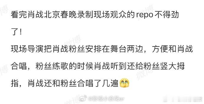 肖战和粉丝合唱肖战北京春晚观众repo宠肖战还得是北京卫视北京卫视用实际行动宠肖战,连续多年给予优质舞台,见证他从青涩到兼具实力与感染力的蜕变。