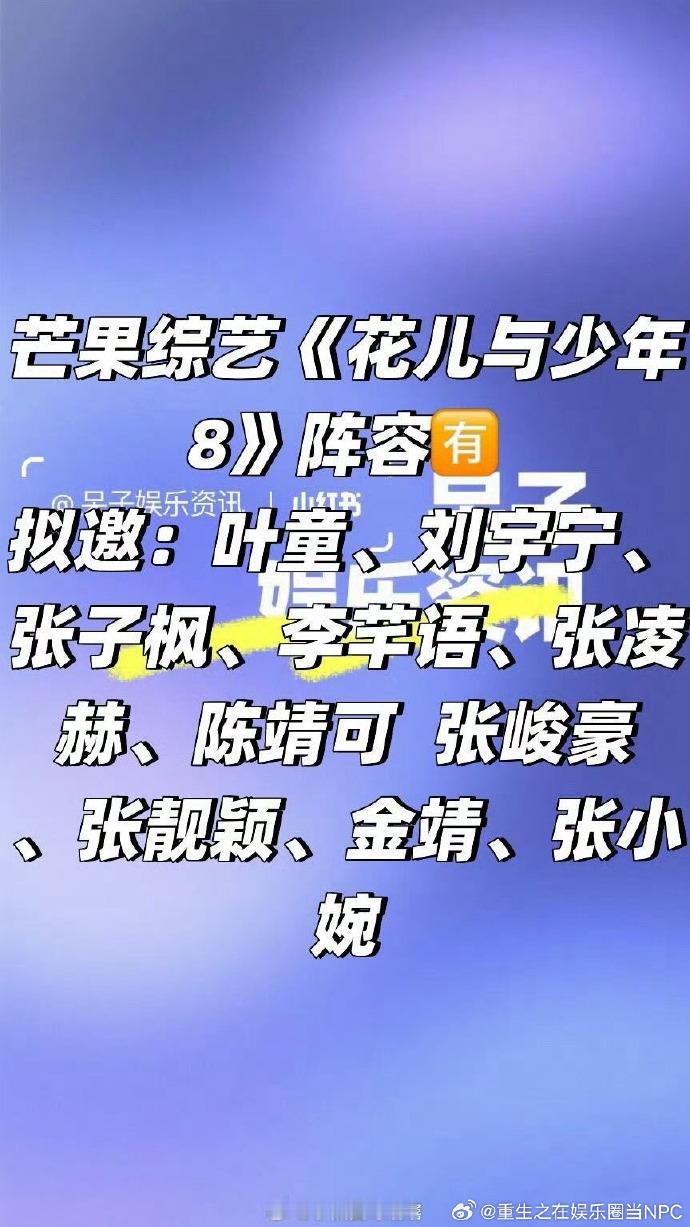 花少8网传名单 喜剧组与实力派双向加持,金靖张小婉搞笑输出,张靓颖用歌声治愈旅途时光。