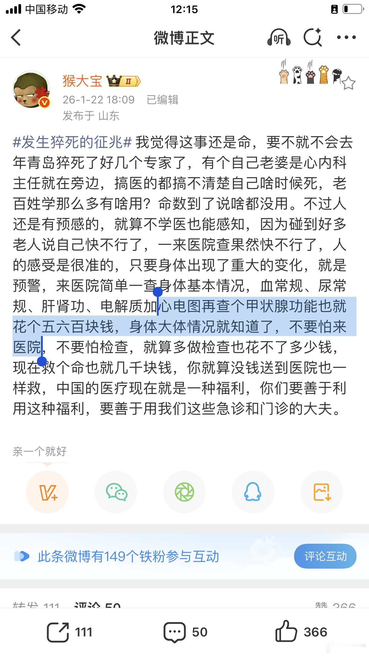 猴大宝医生:血管堵了心脏熄火了怎么救猴大宝医生之问才是要害问你血管堵不堵一堵心脏就完28岁心梗45岁以下年轻人解决办法三招:一早起床多喝白开水;hiit锻练;不喝糖水+奶茶