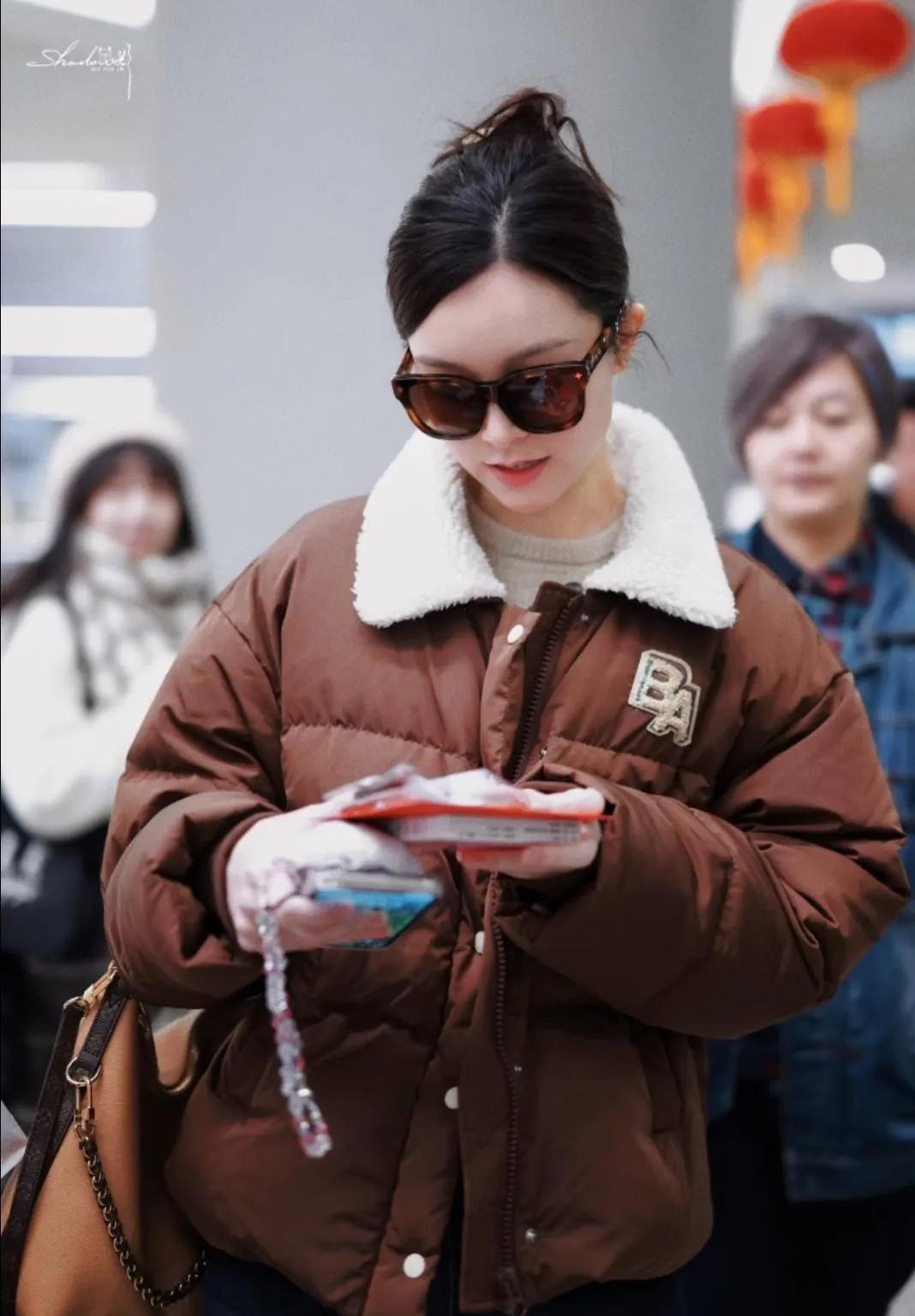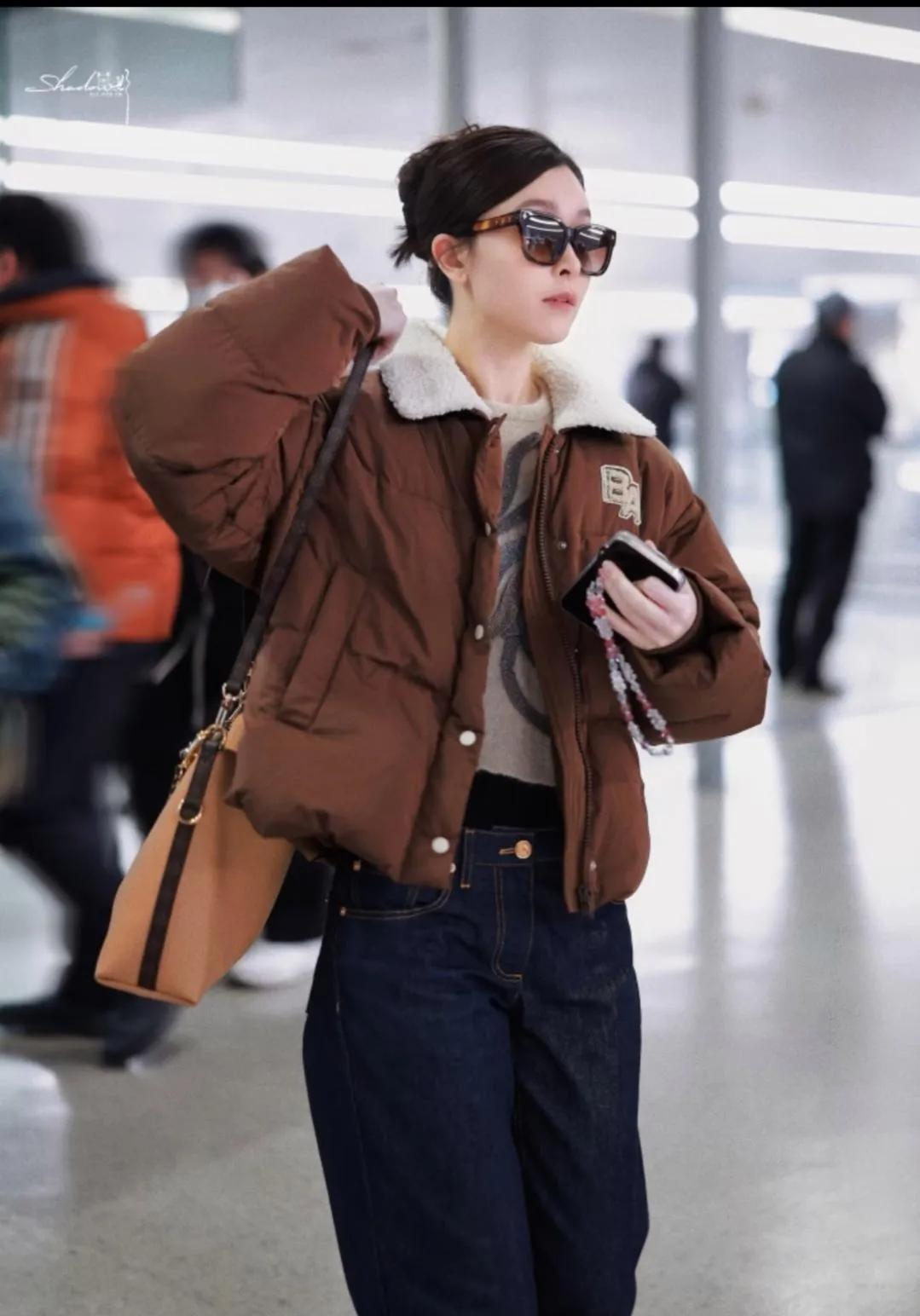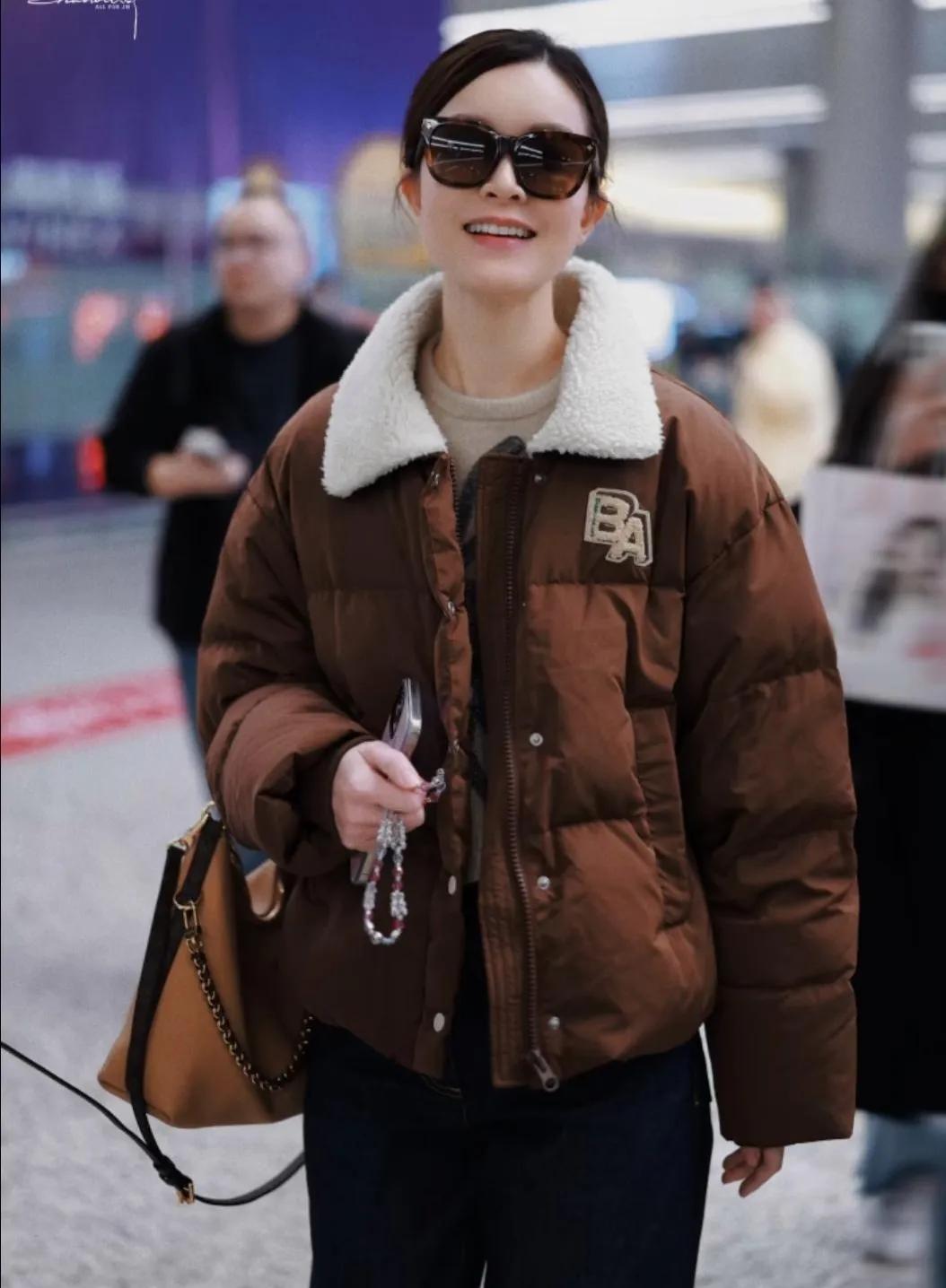 文咏珊|焦糖色羽绒服穿搭赢麻了🎯 被文咏珊这套机场穿搭美到失语! 焦糖色羽绒服自带秋冬温暖滤镜,羊羔毛翻领是点睛之笔,软糯又减龄。卷边阔腿牛仔裤随性显瘦,老花包一背,复古时髦感直接拉满。 墨镜一戴谁都不爱,又甜又酷的松弛感,这才是女明星私服的正确打开方式!