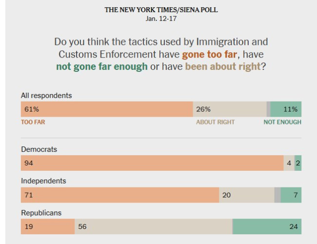 《纽约时报》/锡耶纳大学的民调显示,美国选民对驱逐移民问题意见分歧,但普遍厌恶ICE的执法,对ICE的执法方式压倒性地表示不满,并认为这个机构做得太过分。国际局势海外新鲜事热点现场