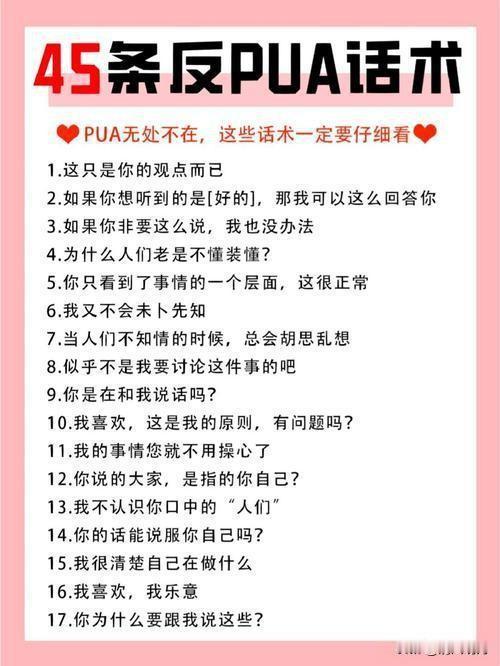 一个值得老师、家长、学生注意的现象! 一种新型PUA正在校园蔓延:同学常说5句话,就是想操控你!快躲开。新型PUA正在校园蔓延:同学常说5句话,就是想操控你!快躲开。 在校园里,一股隐藏的暗流正悄然涌动。一些学生正陷入一种新型的“PUA”陷阱——看似无害的五句话,却暗藏操控的玄机。这些话语像温水煮青蛙,让人逐渐迷失自我,甚至失去判断力。 “你这么喜欢我,说明你很在乎我。”、“你是不是不够关心我?我有点失望。”、“你不陪我,我就觉得你不在乎我。”、“你要是不同意,我就觉得你不爱我。”、“你要是不听我的,我就不理你。”…… 这些看似普通的言语,背后却隐藏着操控的阴影。它们像一把无形的刀,逐渐削弱你的自尊,让你变得越来越依赖、越来越迷茫。 这不是偶然,而是一些人利用心理战术,试图掌控他人的情感。校园本应是纯真的乐园,却成为了操控的温床。 青少年的心理尚未成熟,容易被这些“甜言蜜语”迷惑,甚至陷入情感的泥潭。 面对这种情况,我们需要清醒。教育者、家长、同学们都应提高警惕,学会识别操控的蛛丝马迹。 真正的关系,应该是平等、尊重、理解,而非操控和被操控。只有这样,才能让我们的校园成为真正的成长乐园,而不是心理战的战场。 每个人都值得被尊重,每段关系都应建立在健康的基础上。面对“新型PUA”,我们要勇敢说“不”, 用理智守护自己,用真诚守护他人。只有这样,才能共同营造一个安全、温暖、充满正能量的校园环境。