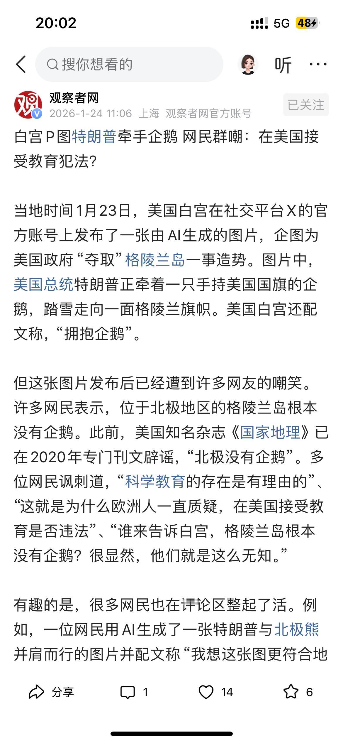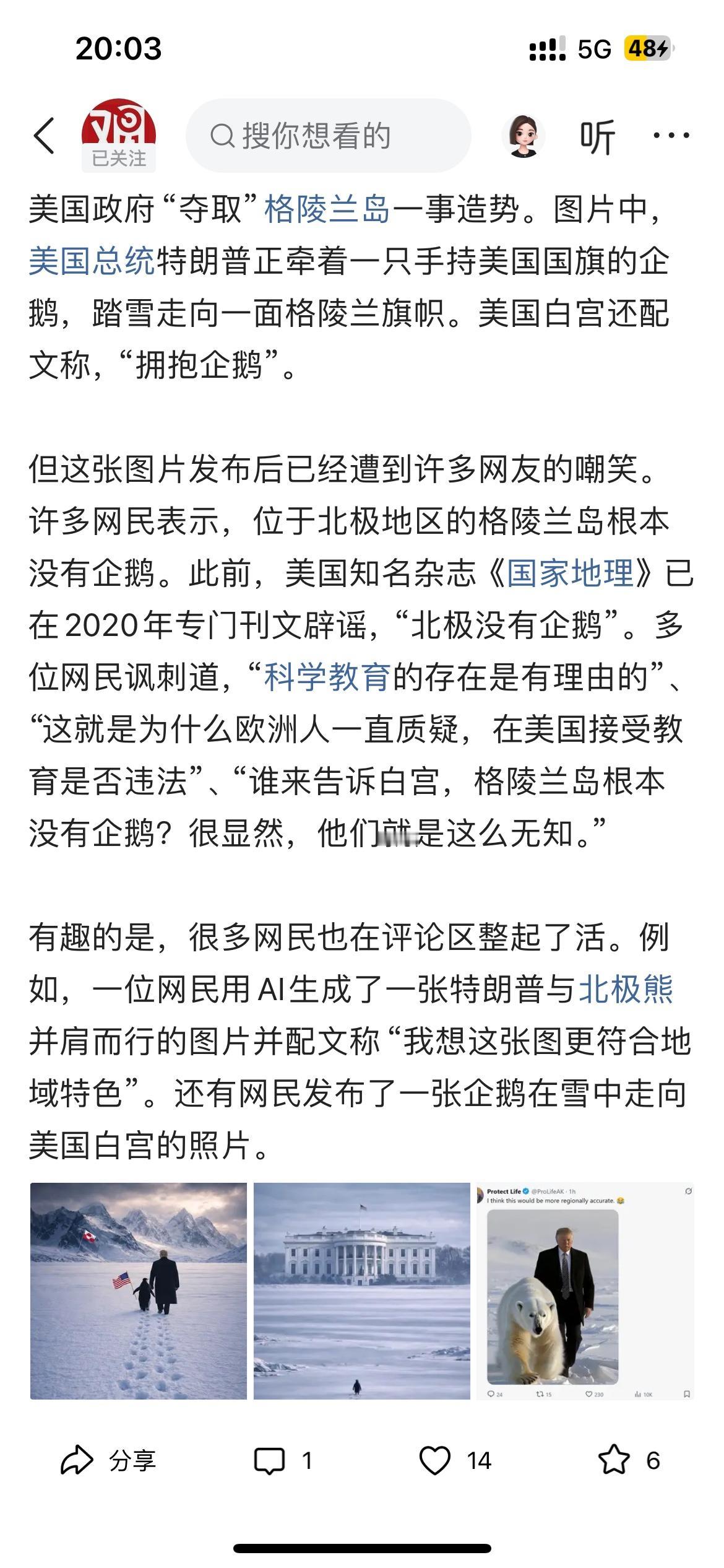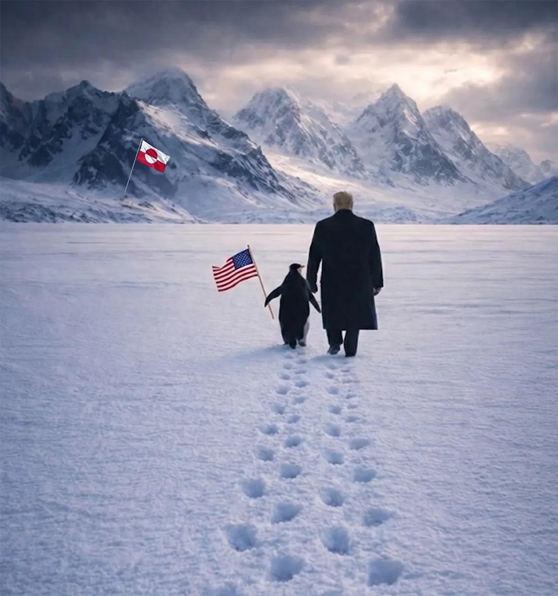美国白宫为什么不愿意用这张特朗普与格陵兰岛存在的北极熊同行的图片,原因是什么? 皆因俄罗斯被人代称为北极熊,特朗普与北极熊同行,那不是变成特朗普与俄罗斯同行么!那这样是万万不能的! 所以白宫宁可错着用特朗普与企鹅同行,也不能用特朗普与北极熊同行,要不然会被欧洲及一些人喷的更狠!