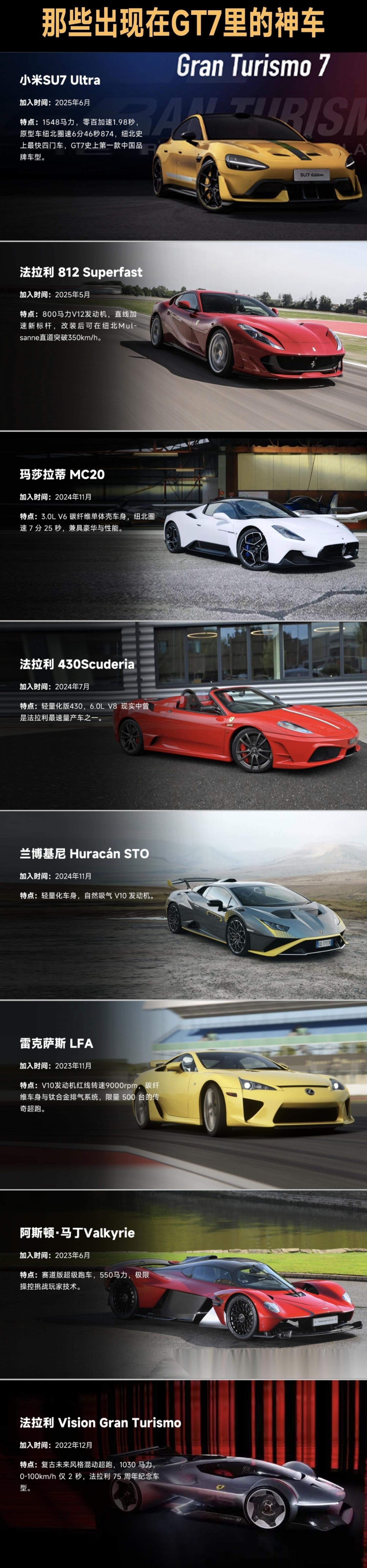 28年的等待,GT赛车系列即将迎来首款中国车,小米SU7 Ultra!看到山内发的GT7新预告,即将在下周更新3款新车,大尾翼明显是都有的,但有激光雷达的那款,很显然一眼SU7 Ultra无疑了,另外两款应该就是保时捷911 GT3 R和现代ELANTRA TCR。不多说了各位,下周上线咱们直接纽北见!这样属于中国汽车的里程碑时刻,咱必须第一时间见证,同时也感谢小米,让全世界热爱汽车文化的玩家,都能了解到中国汽车的追求与进步!