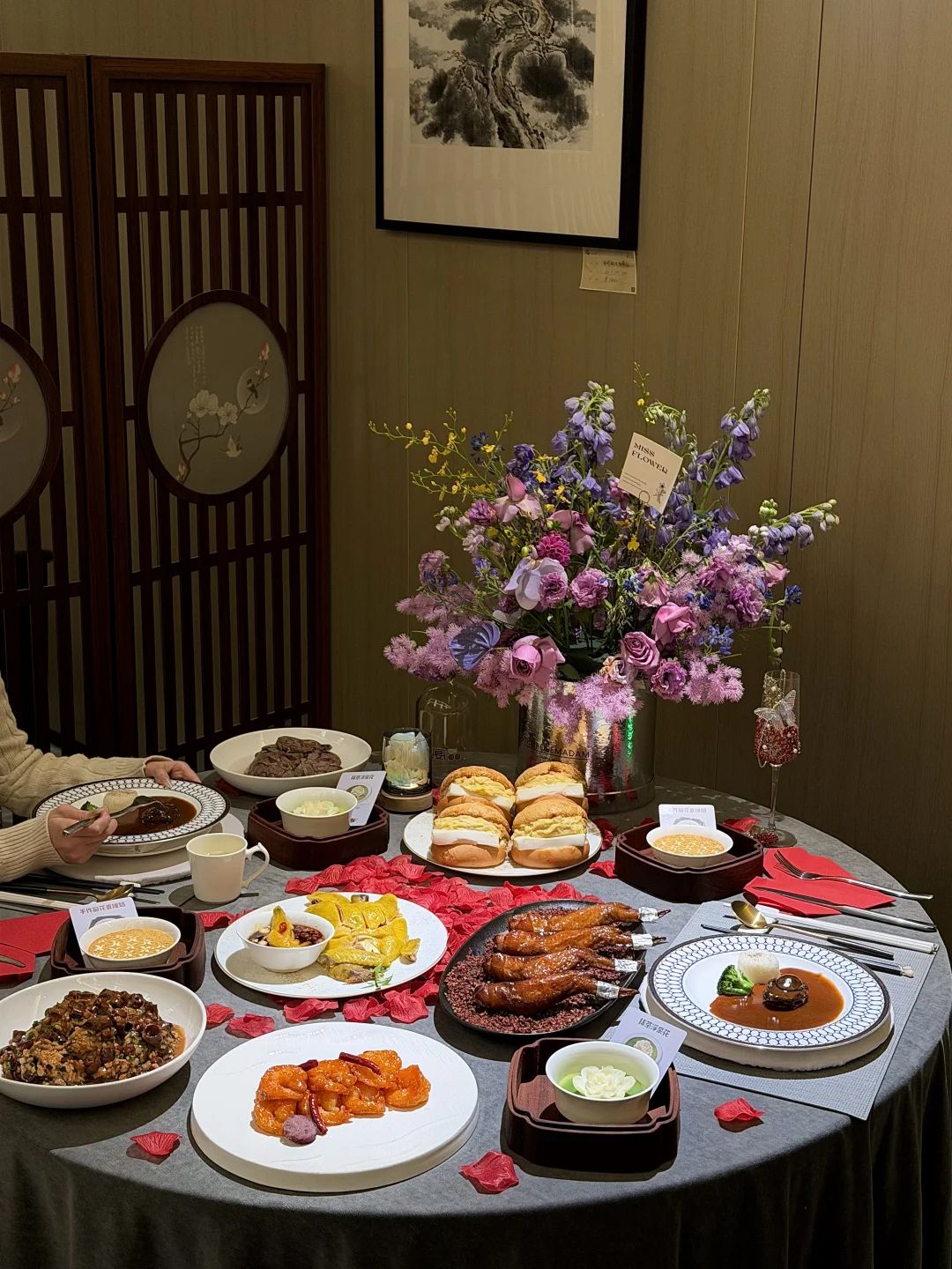 下了南京南站🚄直奔这里!!! 南京朋友带我们去吃的二十年老店! 就在大报恩寺附近~ - 📝美食推荐 ✔️椒麻牡丹虾球 甜辣口的大虾球🍤 不用剥壳懒人快乐子!! ✔️海肠捞饭 脆脆的海肠搭配浓郁捞饭~一口气炫完一整碗🤤! ✔️爽口脆肉皖鱼片 还是第一次吃脆皖鱼🐟treetree的好神奇的口感!! ✔️榴莲奶冻菠萝包 榴莲脑袋都给我闭眼冲!酥脆菠萝包里面还有大块Q弹奶冻~ 刚好朋友今天过生日嘿嘿!米米嘟漂亮饭🍽️生日还会帮忙布置~ 📍颂福楼·福宴雅厨·五福佛跳墙(卡子门店)