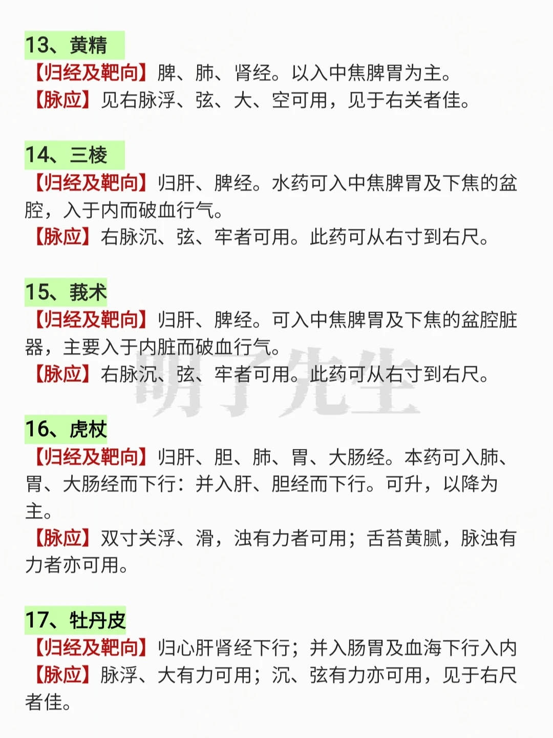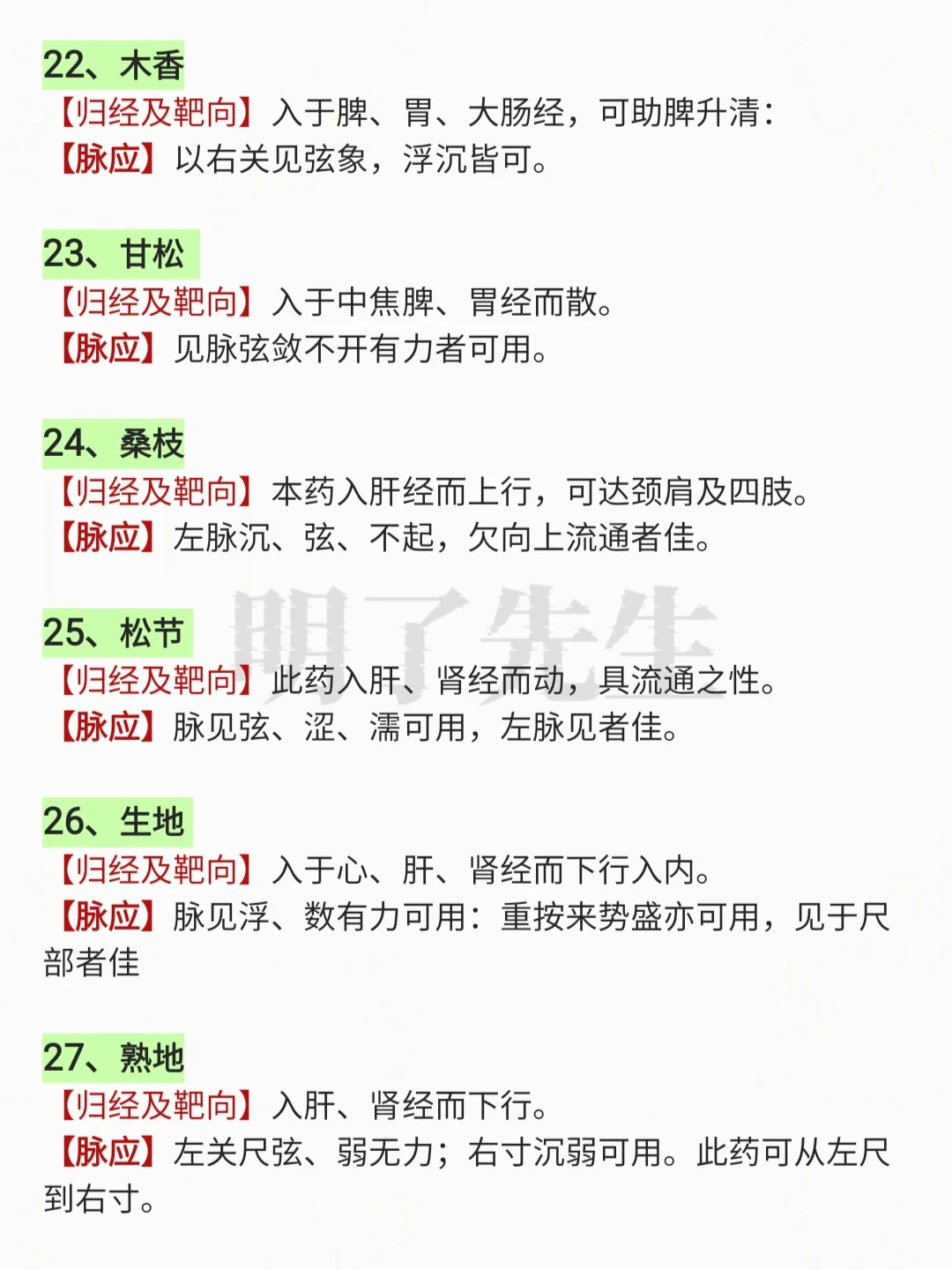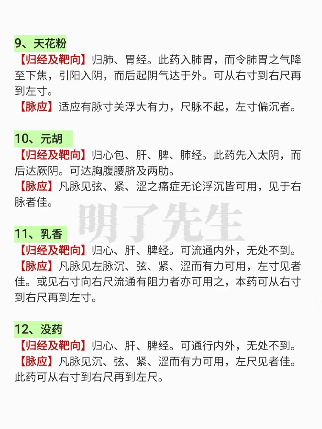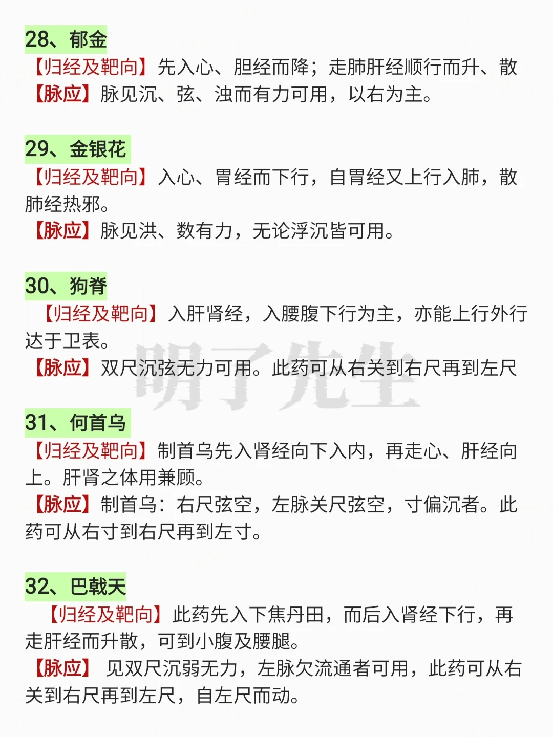 100味常用中药“靶向作用”及“对应脉象”