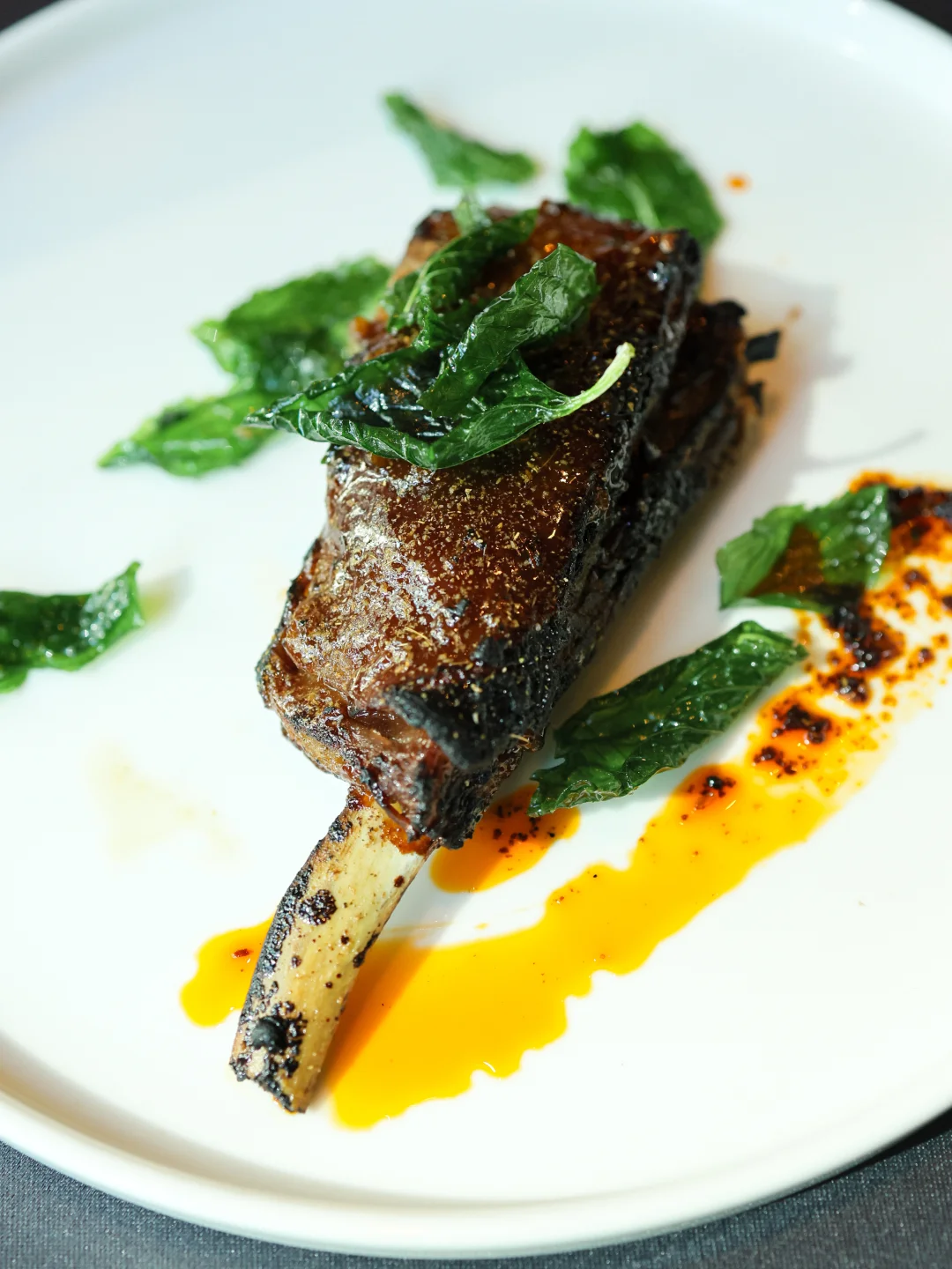 🐑两道排骨,羊肋排极致的甜口调味以及特意处理成焦苦的脆边,对比强烈,各有所爱。