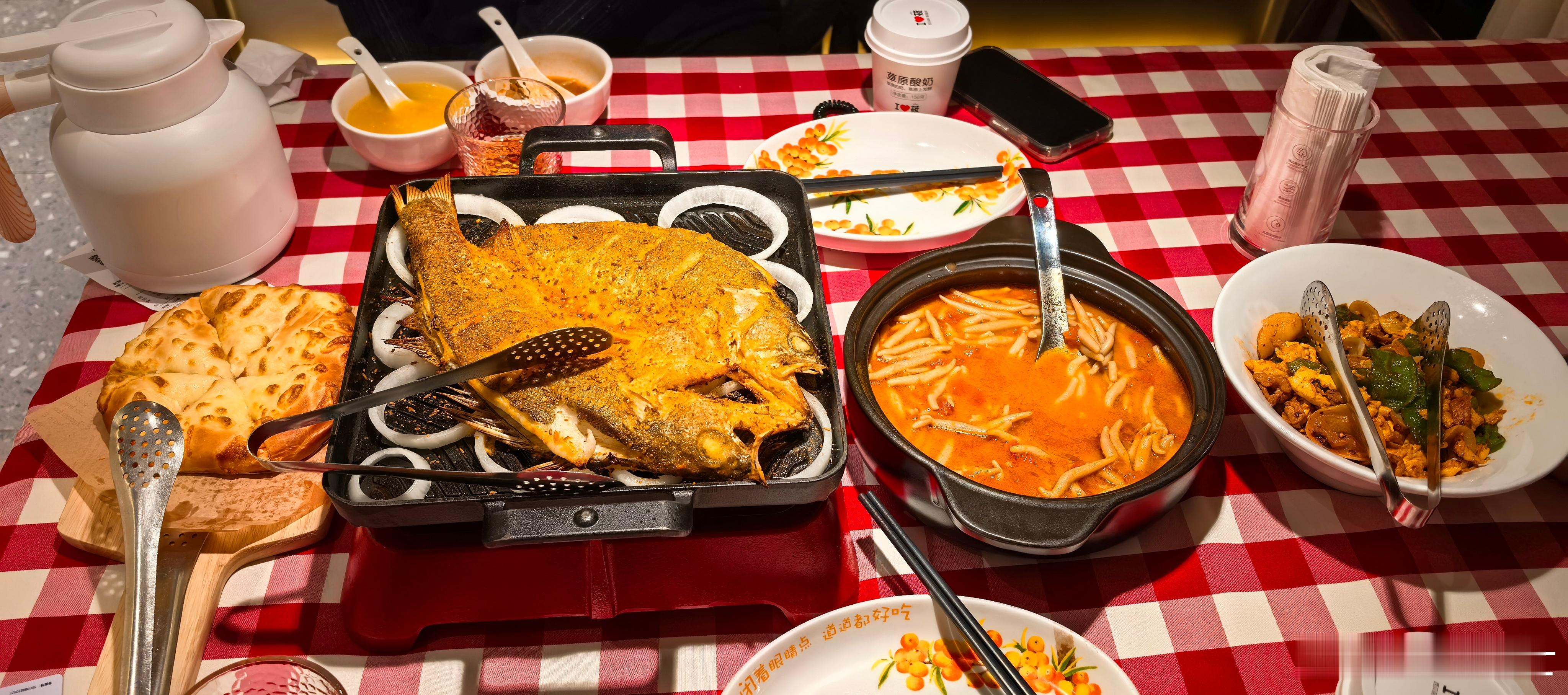 今晚,在西贝西安西部大道荟聚中心店吃了顿饭。我点的菜,朋友买的单。我点了每次必点的奶酪饼,又特别要了一份葱香烤鱼(海鲈鱼),这款烤鲈鱼,我是第三次吃了。今天是朋友的生日,店里給赠了一份长寿面和一盘由凉糕和水果组成的拼盘,结账时,还把莜面鱼鱼给免单了。店长说要叫服务员过来给搞个生日仪式,我朋友喜欢安静,谢绝了。今天店里用餐的客人很多,里面在吃,外面在排队等座。用餐的,以宝妈带孩子居多,也有一家三口的,总体中青年居多,老年人很少。多余话不说,上图。