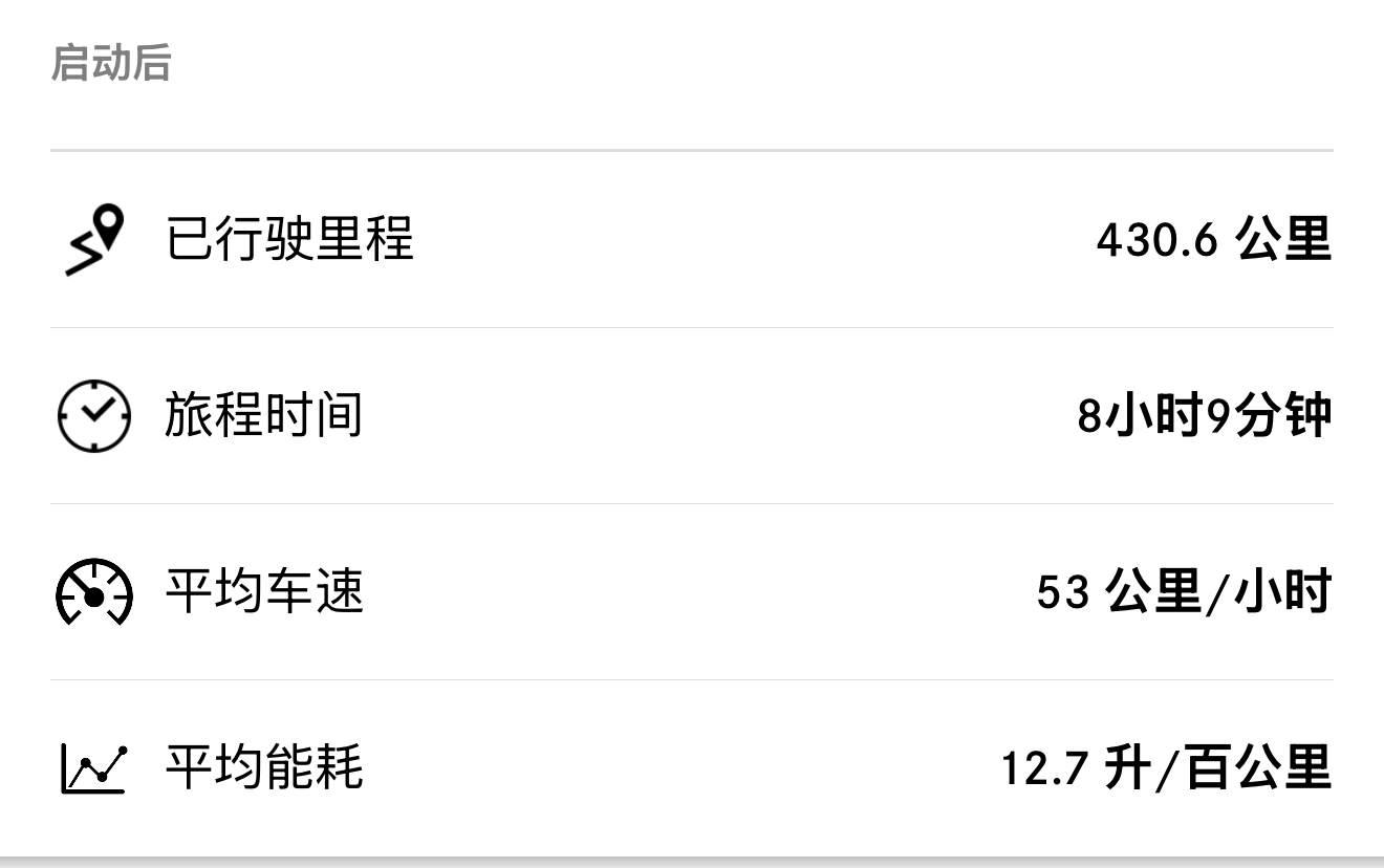 大G今天开了430公里,大约平均油耗13L/100km,算下来高速平均0.93元一公里,大V8也不是那么耗油,如果是城区开的话得19L左右,油耗就比较高了。