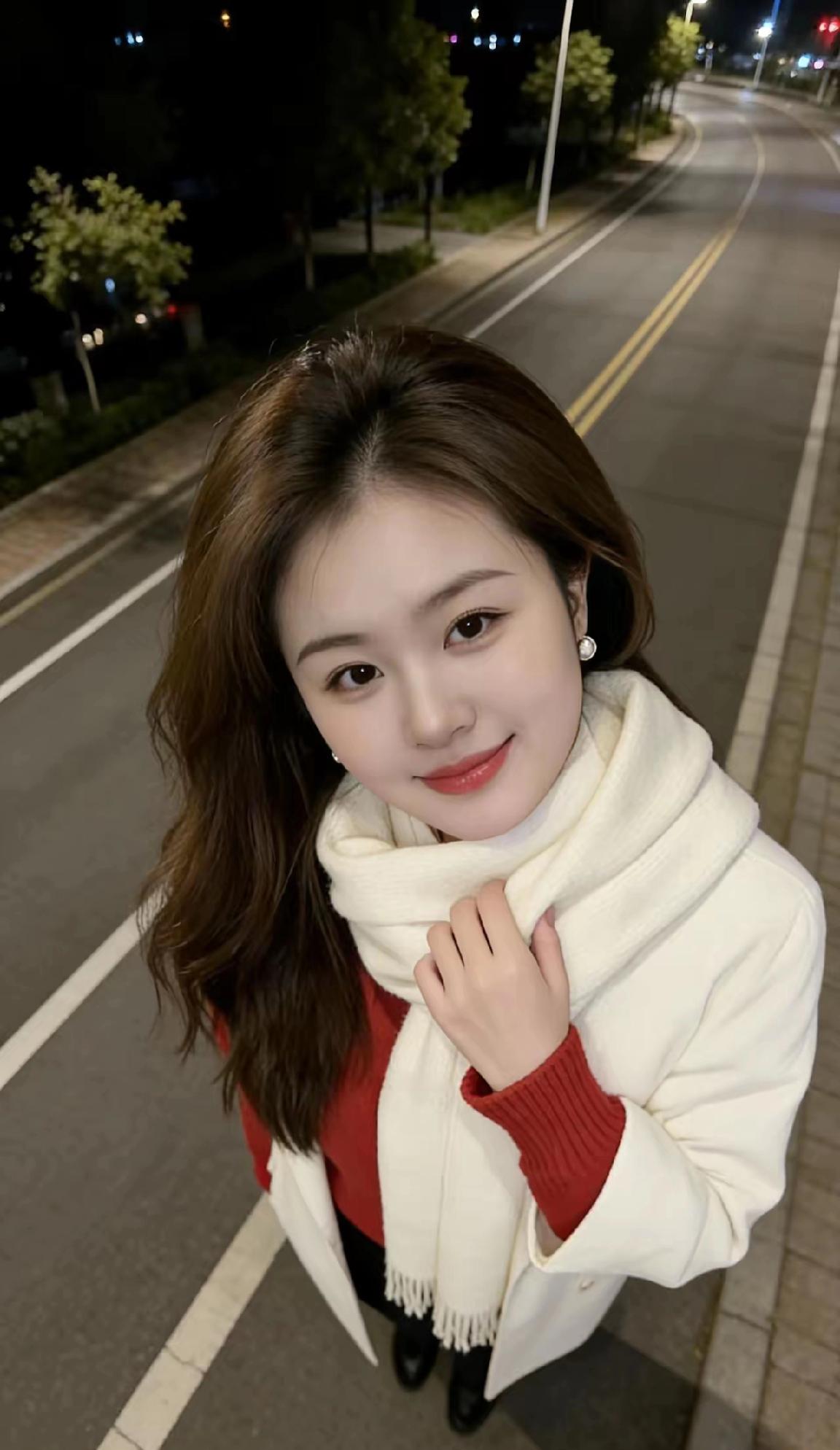 冬日夜晚,温暖围巾,甜美笑容,街角漫步