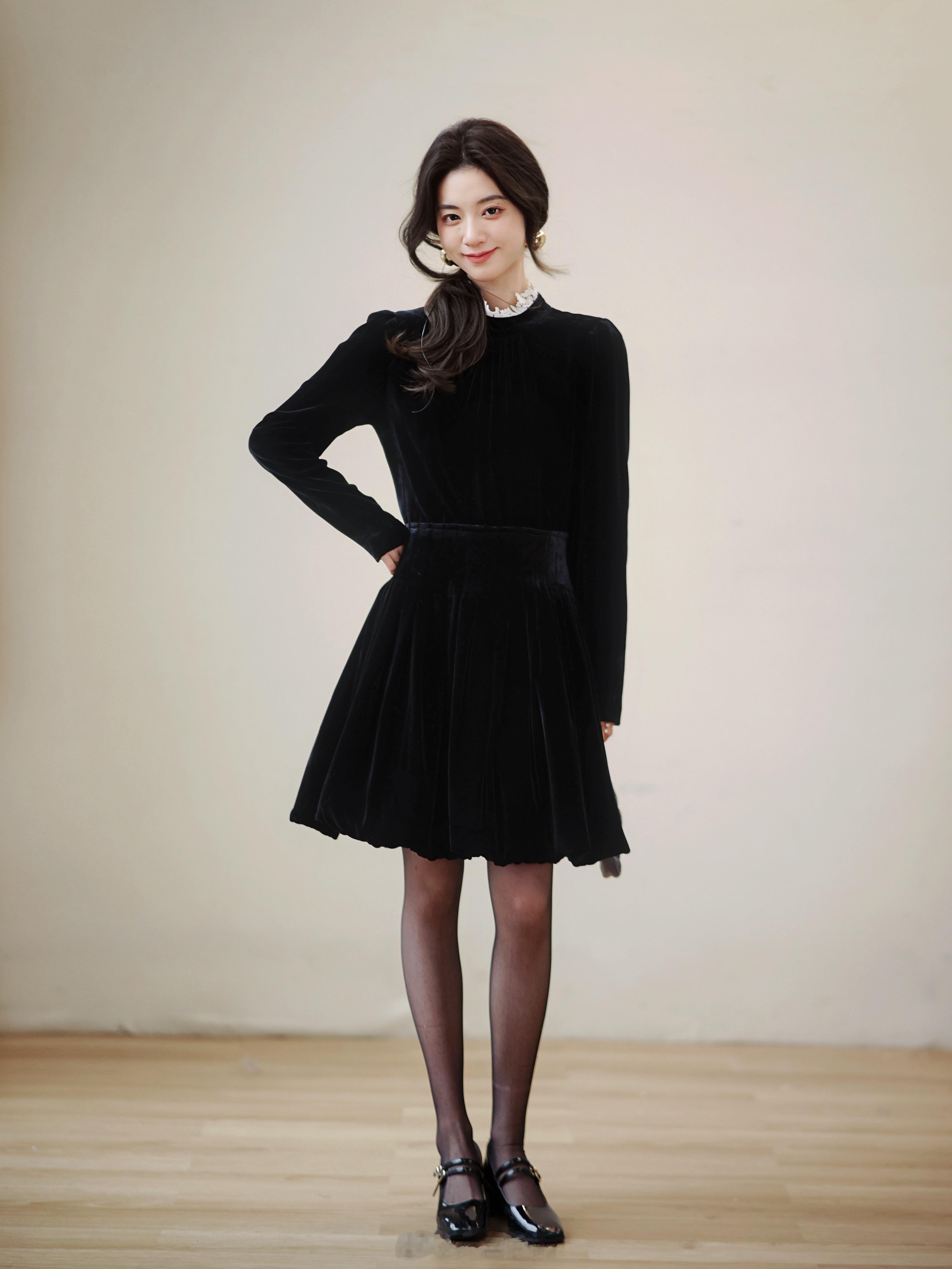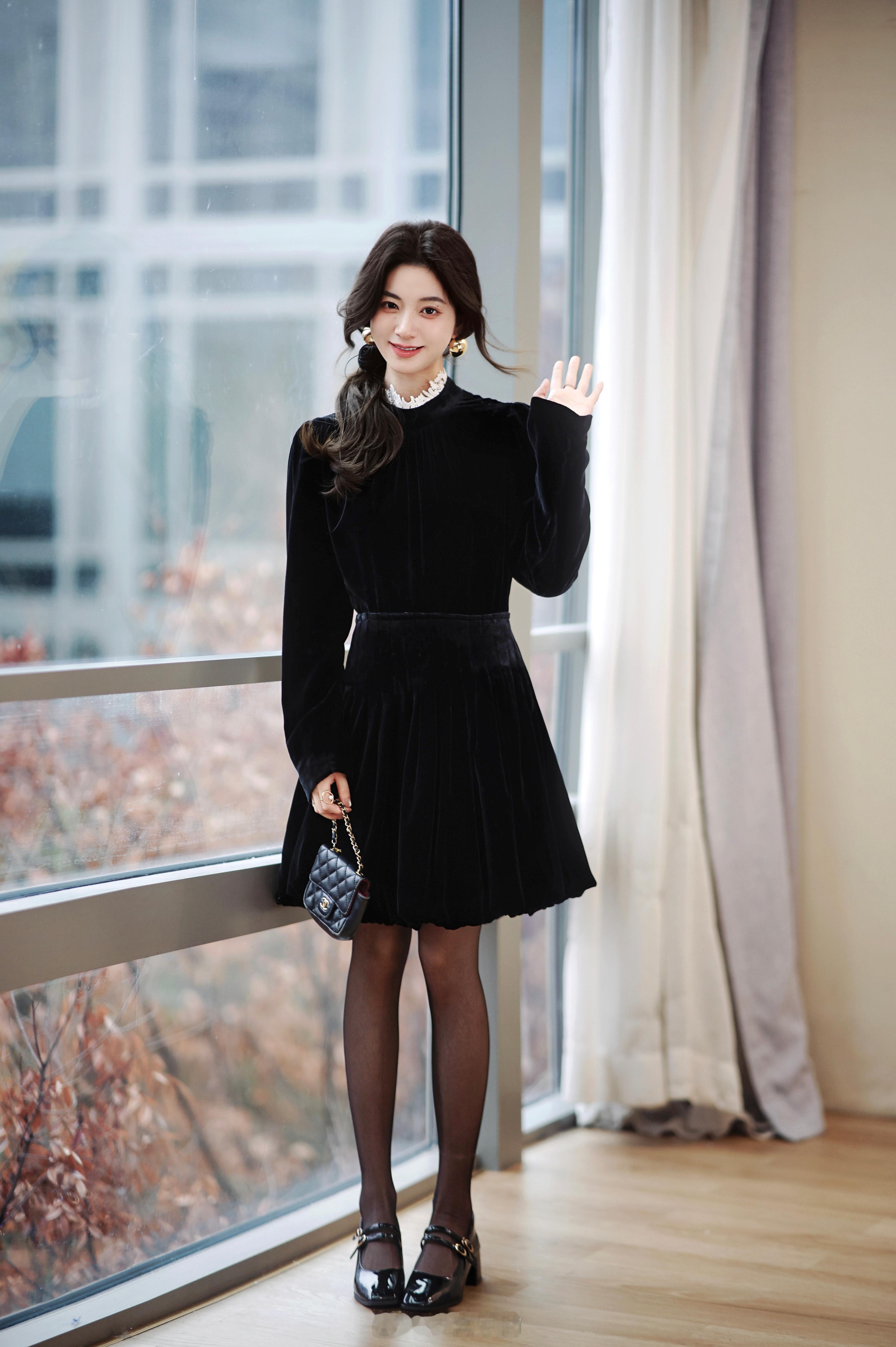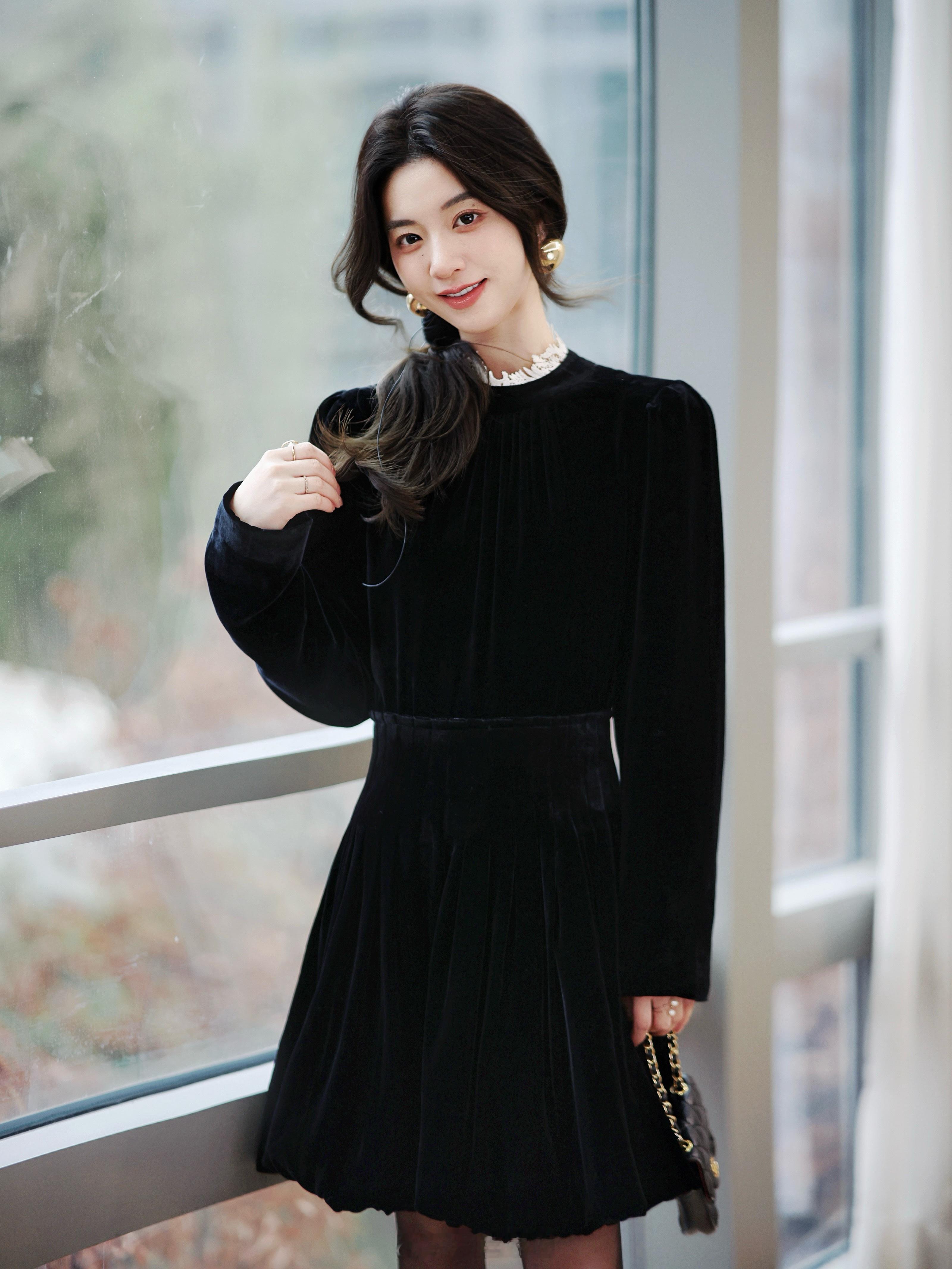 优雅永不褪色~100真丝丝绒连衣裙 收腰A字裙身 超显瘦!单穿叠搭都蛮优雅 一整个法式美人~