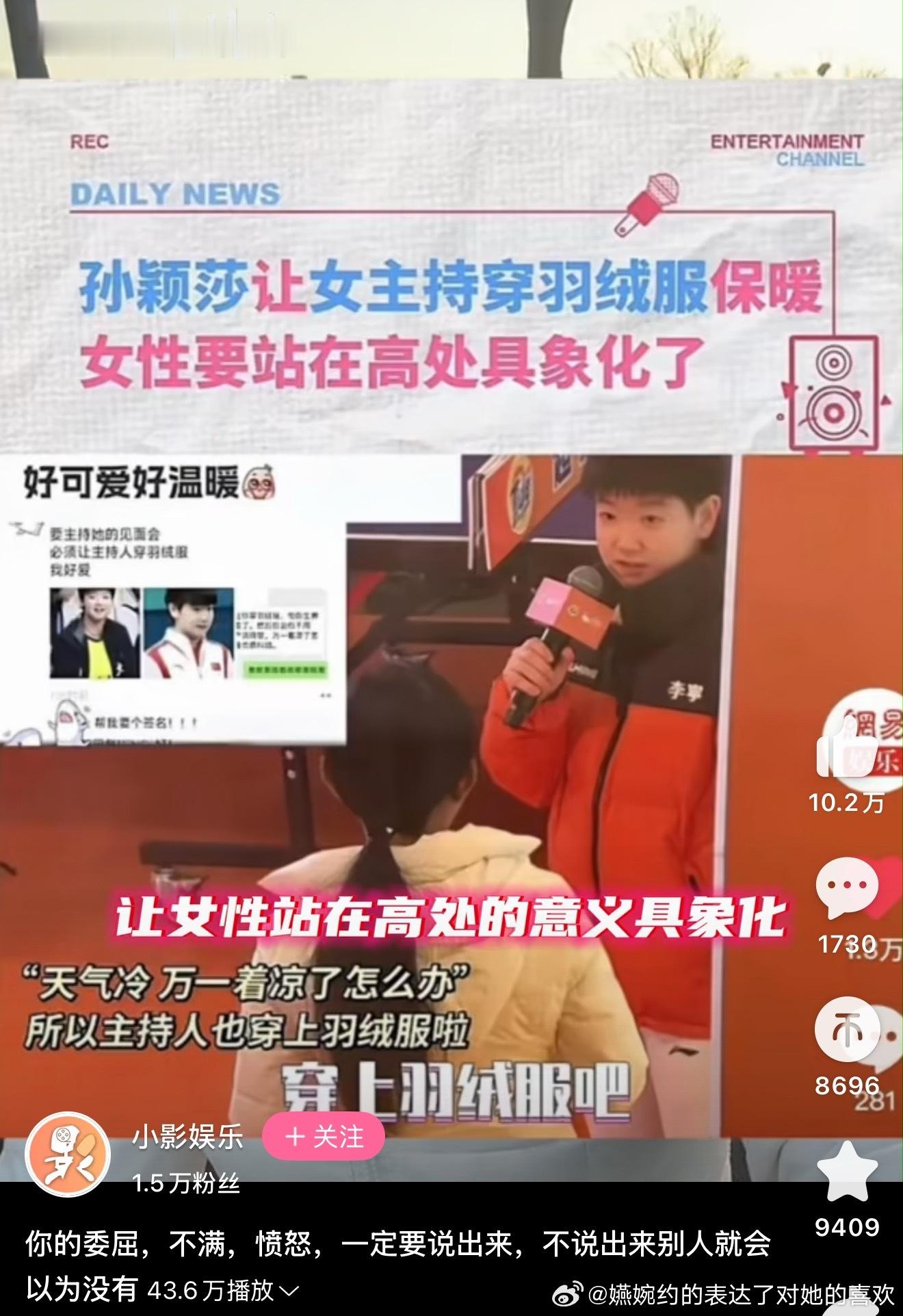 孙颖莎就这样水灵灵的大出圈被盘点在2025年度女性向上美谈,乒丝在如何破防不承认都改变不了莎姐让女主持人穿羽绒服的影响力,以后很多人看到女主持人穿上了羽绒服就会想到莎姐的善举孙颖莎