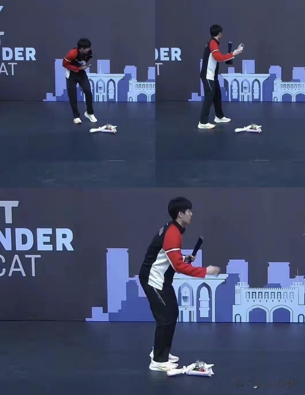 国乒小将温瑞博在WTT马斯喀特常规挑战赛男单决赛4-3力克弗兰西斯卡夺冠,场上霸气十足的他,到了颁奖典礼上立马变身“小迷糊”,一下子没有接住嘉宾送上的花束,自拍时换手,差点把手机摔了,手忙脚乱的样子把自己都羞得笑出声,自拍完赶紧捡完花起准备离开,突然想起要合照又折回来,全程萌翻!毕竟是这位19岁的国乒小帅哥第一次拿到WTT成年组赛事的冠军,“业务不熟”很正常,以后多拿几次就好了!