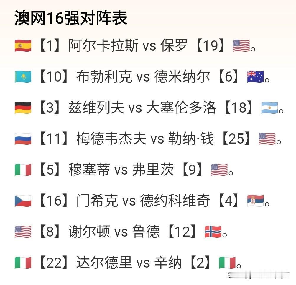 澳网男单16强全部决出,本土球员只有德米纳尔一棵独苗,16强全部被种子选手包揽,前8号种子中有7人进入到16强,只有7号种子阿利亚西姆在与博尔热斯的第二轮比赛因伤退赛,未能晋级,巧合的是,女单种子选手唯一没进16强的也是7号种子、意大利小钢炮鲍里妮,她也是止步32强,看来这个“7”在本届澳网不是啥幸运数字。男单16强中有4位美国球员,女单16强中也有5位美国球员,这样,美国球员占据了32个单打16强席位中的9席。