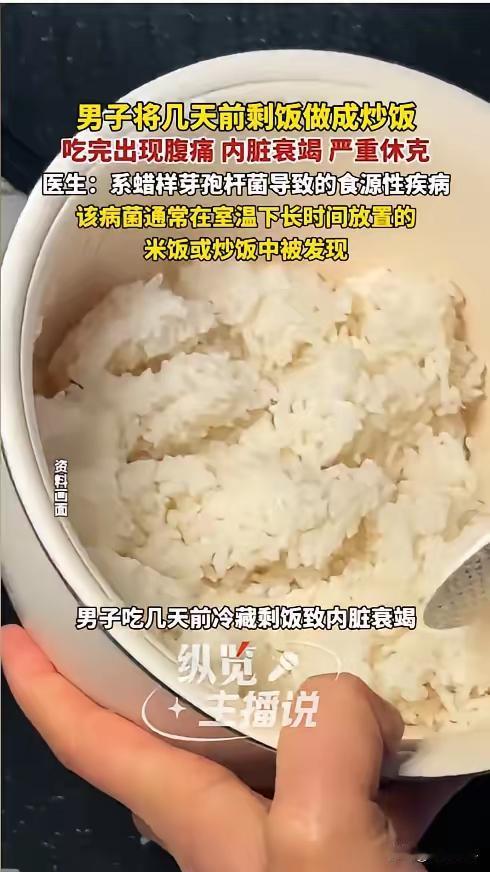 惊!一碗隔夜炒饭差点夺命!专家提醒:剩饭“变毒”只需4小时,别再冒险吃了! “悲剧发生了!”这个令人震惊的消息近日在广东引发了广泛关注。一名年轻男子因为一碗普通的隔夜炒饭,差点失去生命。事情的经过令人心惊,也让无数家庭开始反思:我们每天都在吃剩饭,但你知道吗?剩饭如果处理不当,可能成为致命的“毒药”。 事情的起因很简单。几天前,这名男子家中剩下一些米饭,平时家人都习惯将剩饭放入冰箱冷藏,以备第二天炒饭或其他菜肴使用。男子平时比较节俭,从不轻易扔掉剩菜剩饭,觉得放在冰箱里,既节省又环保。可谁曾想,几天后的一次“美味”尝试,竟差点葬送了他的生命。 事情发生在一个普通的周末。男子当时觉得懒得做饭,就从冰箱里拿出几天前剩下的米饭,打算炒个蛋炒饭吃。虽然知道剩饭放了几天,但他心想,经过冷藏,应该没有问题。于是,他将米饭倒入锅中,加热炒制,味道还算不错,吃完后心满意足地休息了。 然而,令人没有想到的是,吃完不到两小时,他就开始腹痛难忍,伴随着剧烈的腹泻和呕吐。症状逐渐加重,他的身体变得冷得发抖,意识模糊。家人见状,立即将他送往医院抢救。经过医生的详细检查,诊断结果令人震惊——男子感染了蜡样芽孢杆菌(Clostridium perfringens),一种在米饭、炒饭等淀粉类食物中极易滋生的致命细菌。 蜡样芽孢杆菌是一种极具危险性的细菌,它产生的毒素具有极强的耐高温能力。也就是说,即使你将剩饭加热到很高的温度,也无法彻底杀灭这些毒素。男子的感染导致了严重的食源性中毒,甚至引发了内脏衰竭和休克。幸好经过紧急救治,他才从死亡线上挣扎回来,但后续的康复过程依然漫长而艰难。 这起事件再次提醒我们,剩饭的存放和食用必须格外谨慎。根据专业医生的建议,蜡样芽孢杆菌在室温下放置超过4小时,就可能开始繁殖。即使放入冰箱冷藏,也不能保证绝对安全。尤其是在夏天或环境温度较高的情况下,细菌繁殖速度会加快,剩饭变成“毒饭”的风险也随之增加。 那么,为什么剩饭会变成“毒饭”呢?其实,蜡样芽孢杆菌的芽孢具有极强的抵抗能力。它们在适宜的环境中迅速繁殖,产生的毒素即使经过加热也无法被破坏。这也是为什么很多人习惯用微波炉或炒菜的方式“杀菌”,但其实这是行不通的。毒素的耐高温特性,使得食用变质的剩饭变得极其危险。 这次事件引发了网友们的热议。有人感叹:“以前觉得剩饭放几天也没事,原来潜藏这么大的风险。”也有人建议:“剩饭一定要及时吃完,不能贪图省事,否则可能付出生命的代价。”更有人呼吁:家庭中应加强剩饭的存放和处理意识,尤其是在炎热的天气里,剩饭绝不能存放超过4小时。 事实上,除了蜡样芽孢杆菌,剩饭中还可能滋生其他有害细菌,如沙门氏菌、大肠杆菌等。这些细菌在高温下可能被杀死,但毒素却可能残留,依然危害健康。尤其是对于老人、儿童、孕妇等免疫力较弱的人群,更应格外注意。 那么,如何正确处理剩饭,才能避免类似的悲剧发生呢?专家建议,剩饭应在煮熟后2小时内尽快冷藏,且冷藏温度应保持在4℃以下。存放时间不宜超过24小时,超过时间的剩饭坚决不要食用。加热时,要确保中心温度达到126℃以上,才能最大程度杀灭细菌,但要记住,毒素一旦产生,单纯加热无法消除。 此外,家庭应养成良好的卫生习惯。剩饭放入冰箱前,要尽量密封保存,避免交叉污染。食用前应充分加热,确保每一部分都达到安全温度。同时,建议不要贪图“隔夜饭”的味道,健康才是最重要的。 这次的悲剧再次敲响了警钟:我们对剩饭的处理不当,可能付出惨重的代价。食品安全关系到每个人的生命健康,不能掉以轻心。每个家庭都应加强对剩饭剩菜的认识,科学合理地存放和食用,避免悲剧再次发生。 总结一下:剩饭虽方便,但潜藏的危机不容忽视。只要掌握正确的存放和加热方法,绝大多数食品安全问题都能迎刃而解。不要让“美味的隔夜炒饭”变成“致命的陷阱”。为了自己和家人的健康,请务必遵守食品安全的基本原则。 一碗普通的隔夜炒饭,可能隐藏着致命的菌群。为了生命安全,别再贪图一时的便利,及时处理剩饭,科学存放,健康生活,从我做起!让我们共同努力,远离食源性疾病的威胁,守护每一个家庭的幸福安康。隔夜剩菜 谨慎食用剩菜