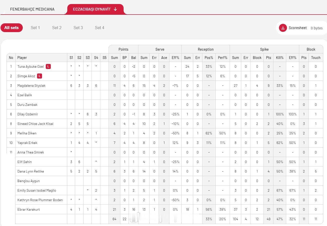 【土超女排费内巴切3-1伊萨彩娃22分】国际排坛战报速递1月24日伊斯坦布尔