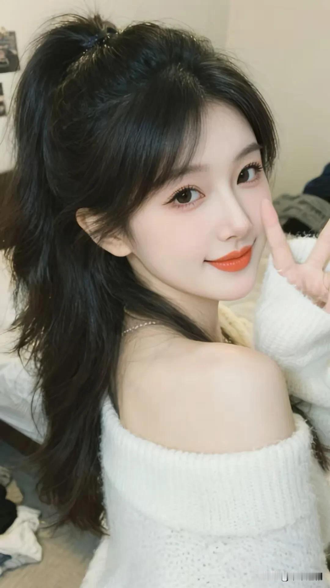 蓬松高马尾衬着清甜笑意,白针织衫滑落肩头。比出剪刀手的瞬间,把居家的松弛感与少女的鲜活感都揉进了这帧画面里。 温柔大方的穿搭 温柔显气质穿搭