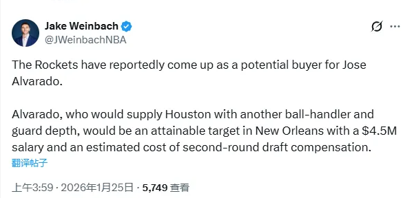 火箭目前已经成为阿尔瓦拉多的一个热门潜在买家,他今年的年薪为450万,筹码预计为次轮签