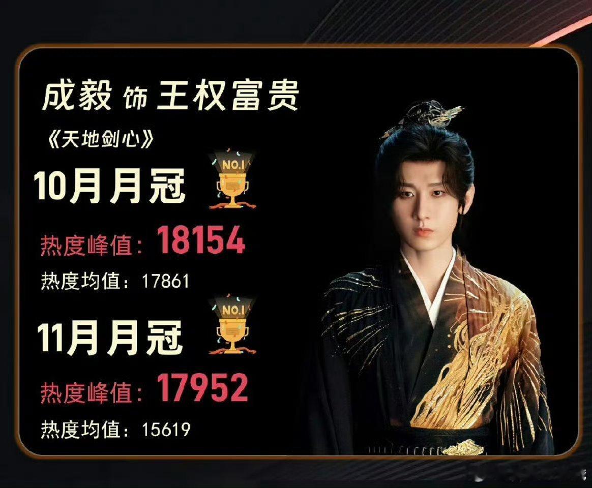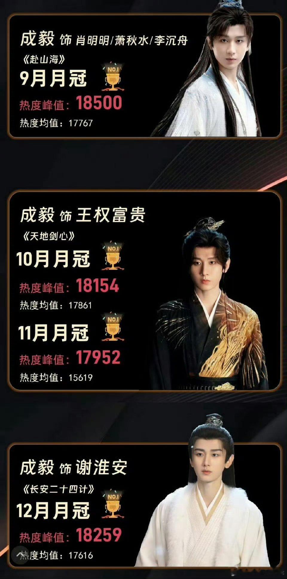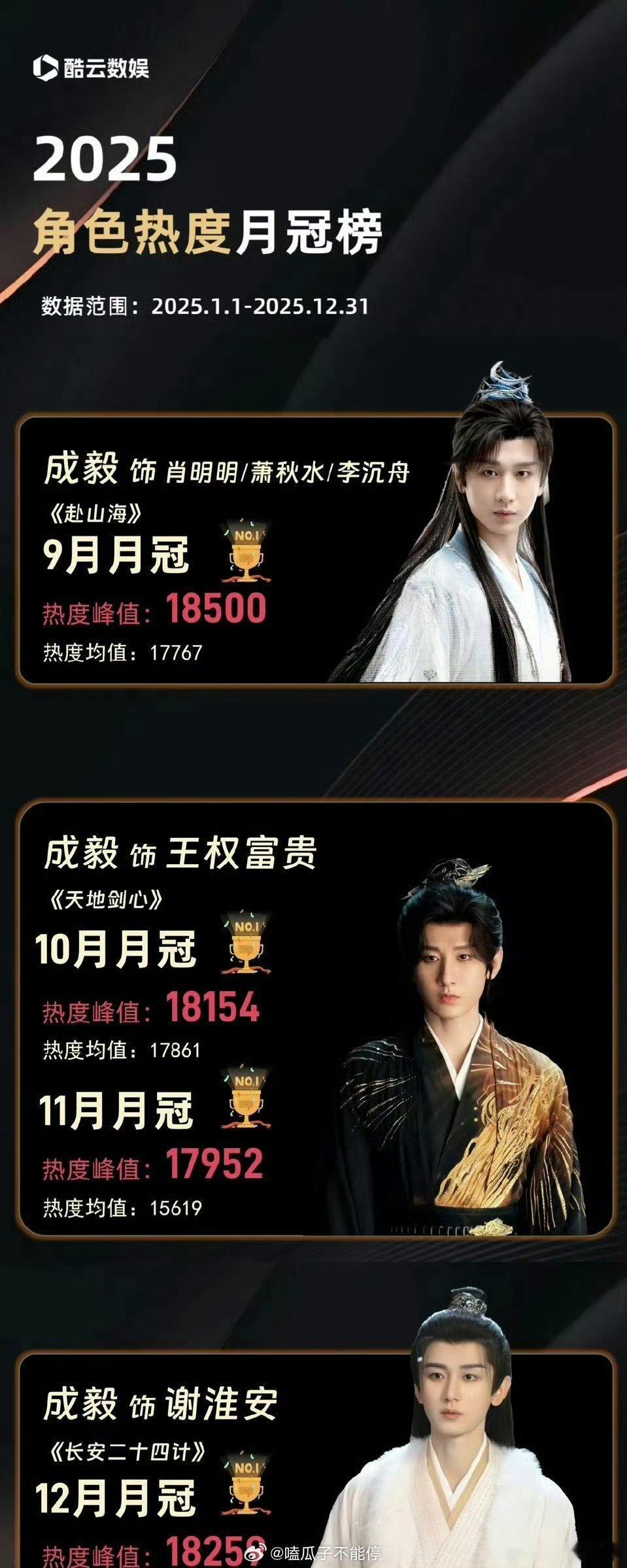 2025酷云角色热度月冠榜,成毅拿下9、10、12月月冠榜冠军🎉 当之无愧了