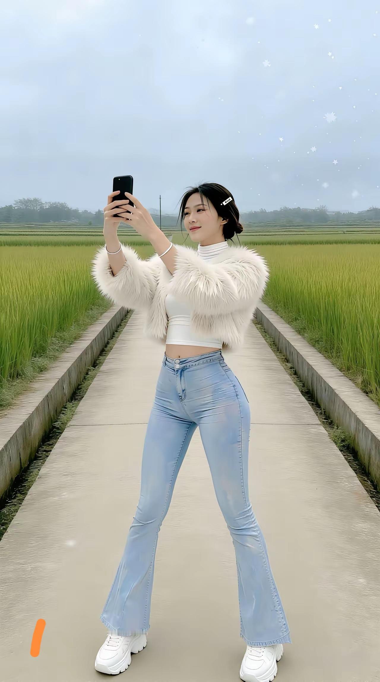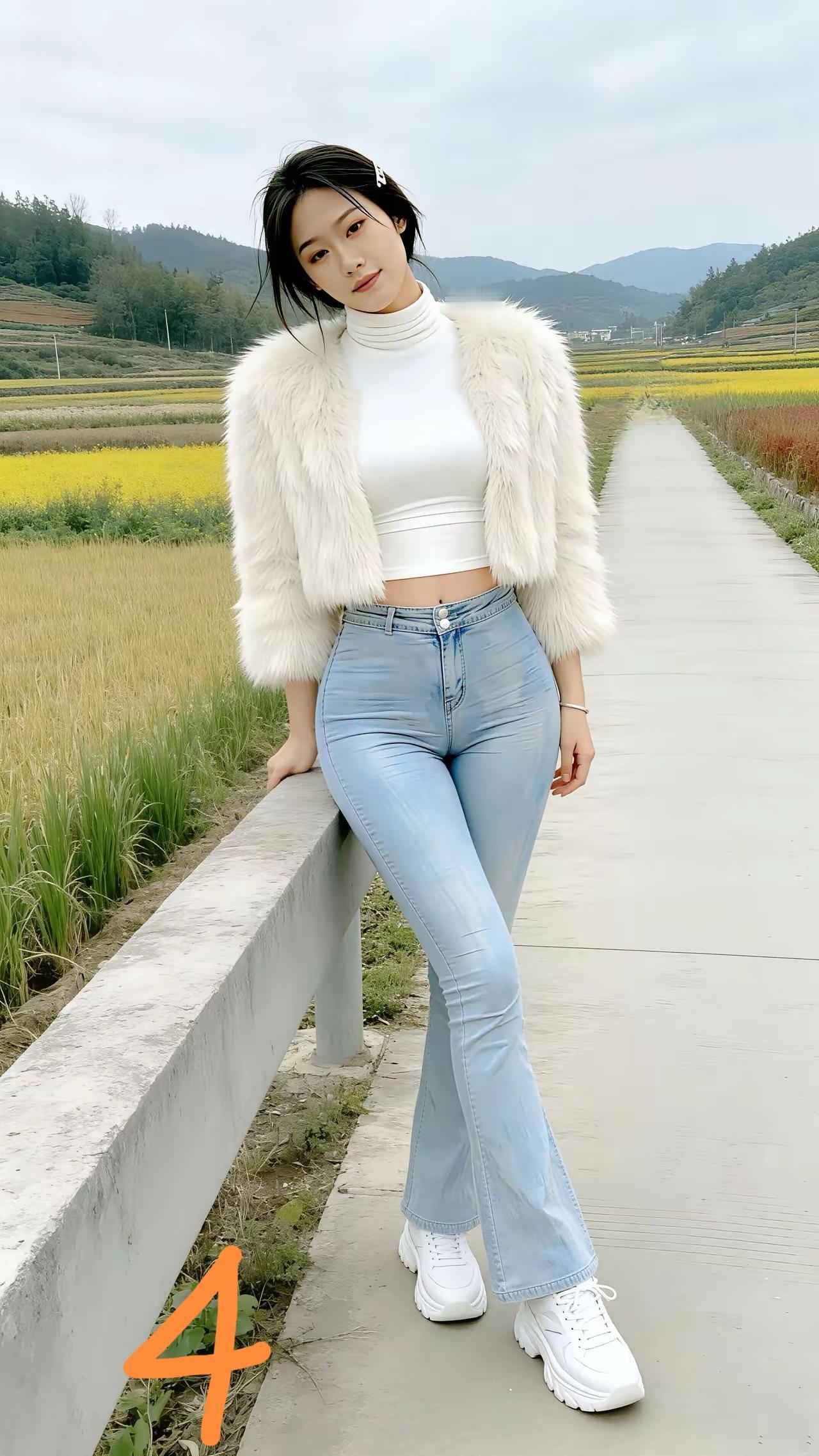 路是这条路,穿着是这身穿着,季节却不同,美女真节约。 1.春季? 2.初夏,应该没问题。 3.有油菜花,又有干枯的水稻,不知道是什么季节。 4.冬天?水稻割了,远处油菜花还没开花。