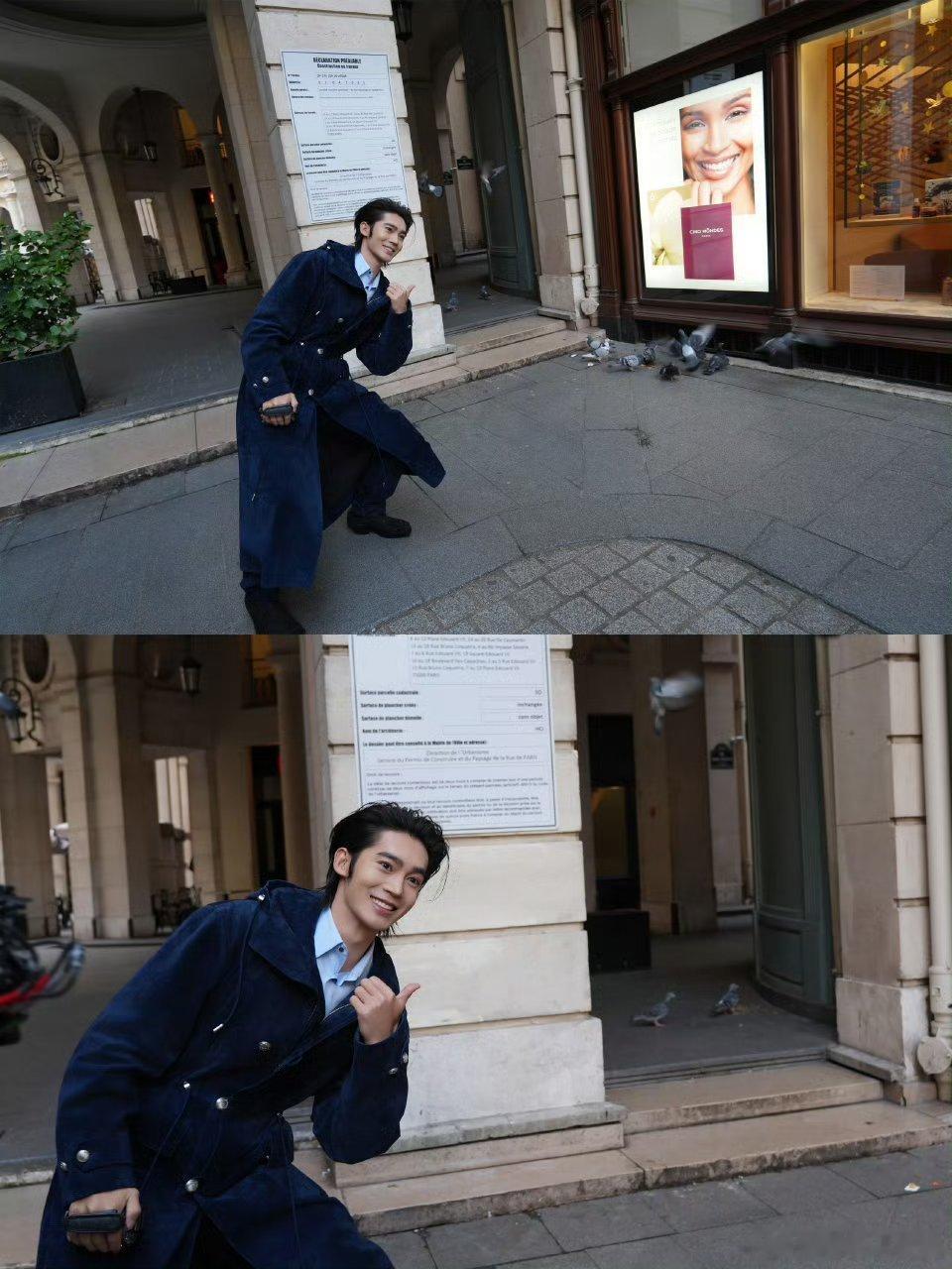 王鹤棣晒巴黎街角帅照,来看看我们的王鹤棣街拍好帅