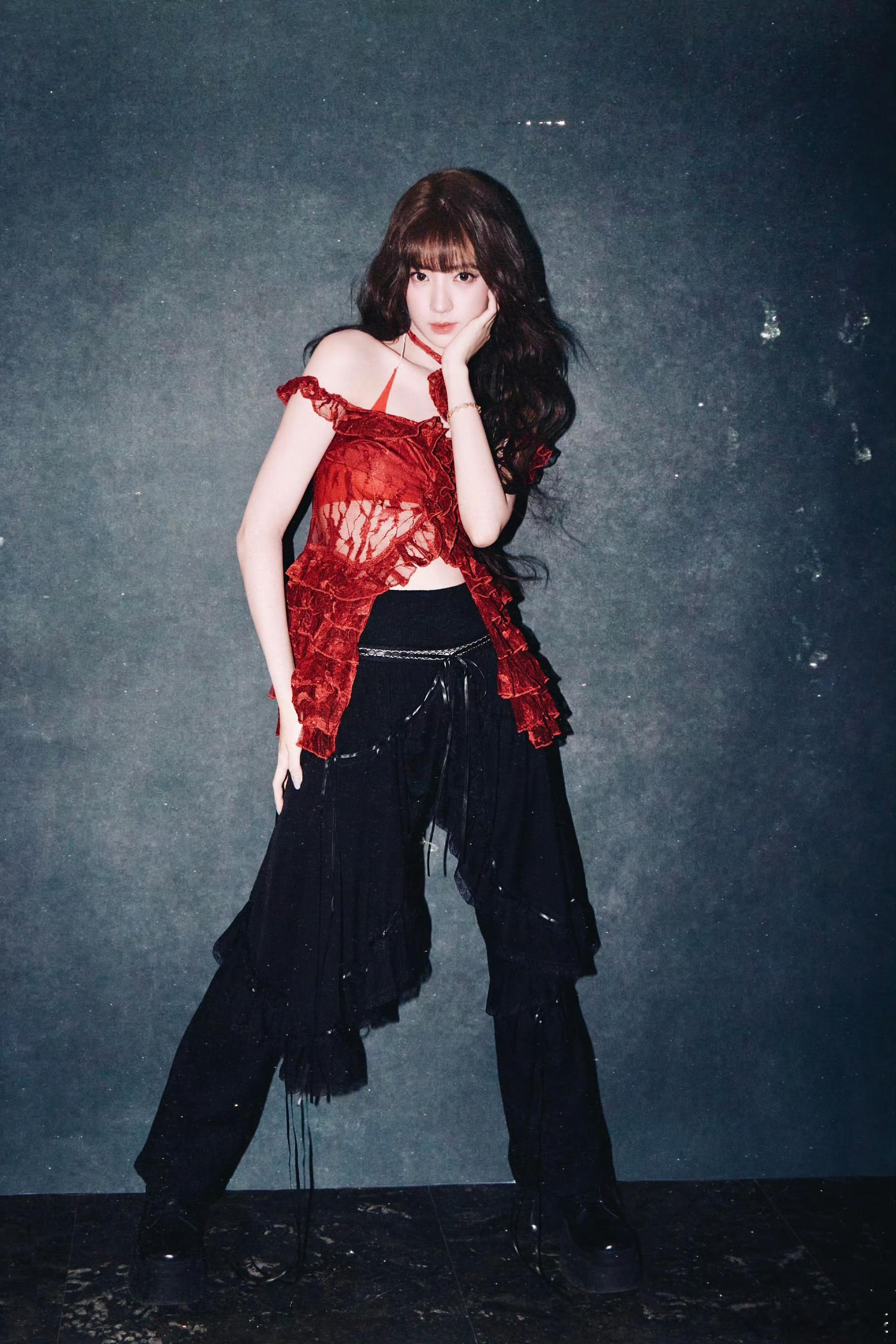 欧阳娣娣摇曳生姿红玫瑰 欧阳娣娣这波红玫瑰造型真的美到心巴!红色吊带蕾丝上衣明艳娇俏,舞台上尽情展现自我风格,像一朵热烈盛开的红玫瑰,让人移不开眼!