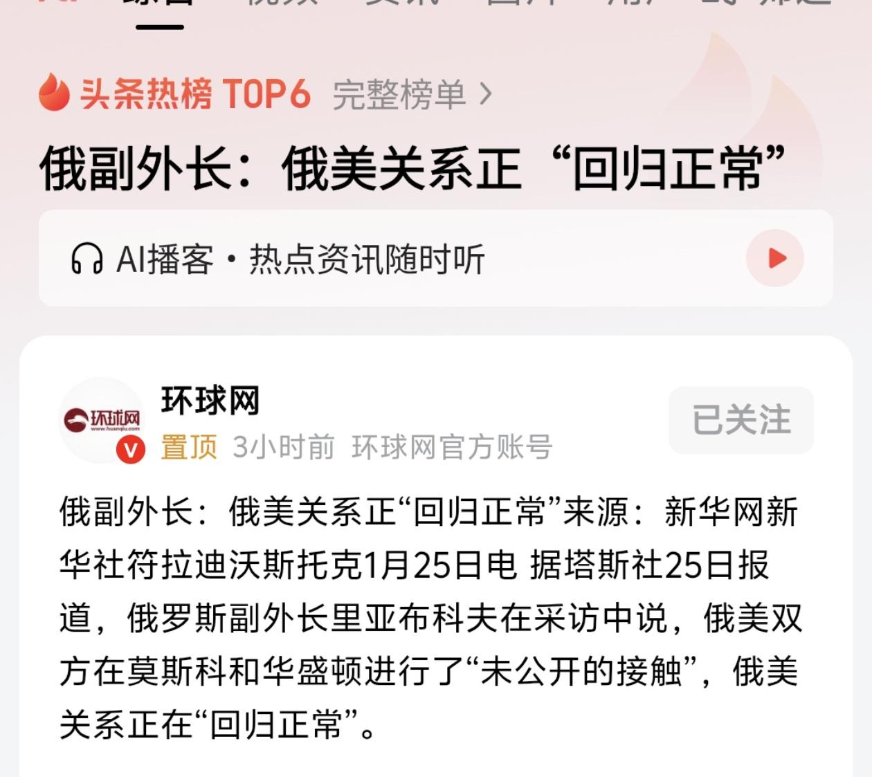 暗流涌动!俄美关系突传“回归正常”信号,背后有何玄机? 2026年开局,俄美关系却悄然传出重磅消息:俄罗斯副外长里亚布科夫25日公开表示,俄美双方在莫斯科和华盛顿进行了“未公开的接触”,并直言两国关系正在“回归正常”。 要知道,自俄乌冲突升级以来,双方关系长期处于冰点。如今这番“破冰”言论,并非空穴来风。据悉,近期俄美专家层面的对话已悄然开展,甚至在1月23日至24日,俄美乌三方还举行了闭门会谈,讨论结束冲突的条件。乌克兰总统泽连斯基也罕见评价对话“具有建设性”。 然而,表面的“回归正常”之下,暗流依然汹涌。里亚布科夫直言,尽管有接触,但在关键摩擦点上仍无进展:美国至今未释放被扣押的“水手”号油轮俄籍船员,也未就派遣新任驻俄大使提出请求。 这究竟是真正的缓和前兆,还是暴风雨前的宁静?显然,俄美关系的“正常化”之路依然漫长且脆弱。这背后,或许不仅是双方的博弈,更是全球地缘政治格局的一次深度重组。对此,我们不妨拭目以待。