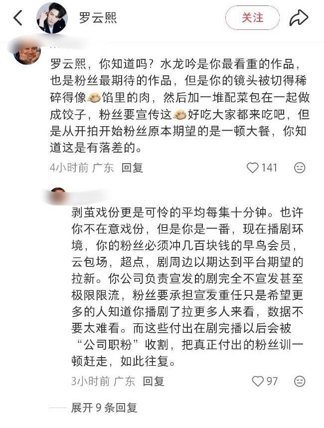 因为水龙吟和剥茧期间不作为罗云熙🍠评论区被粉丝贴脸要求和中视同成解约...