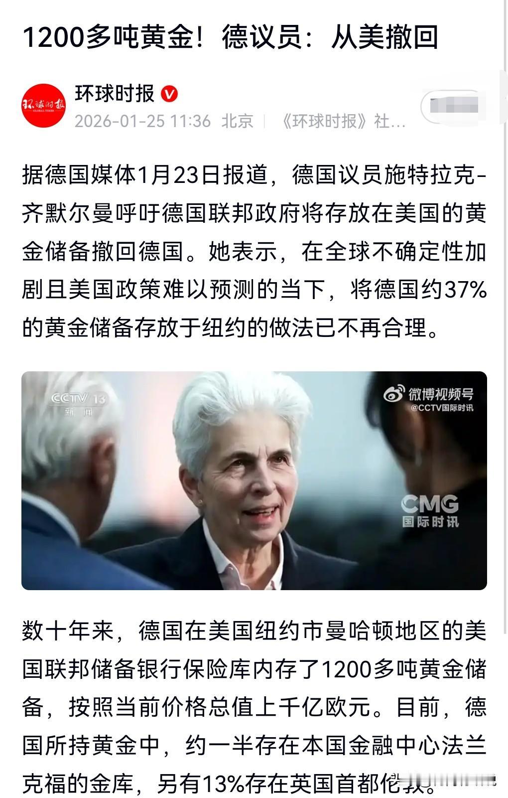 这个议员确实是有先见之明的。美国是一个危险的国家,也是一个没什么诚信的国家。 把1200多吨黄金放在美国,那肯定是一个疯狂的行为。 近日报道,德议员呼吁从美撤回1200多吨黄金。 确实要弄回来,因为美国没什么底线,老是喜欢搞别国的的资源,跟强盗没什么两样。 美国最喜欢侵占别国的石油了。