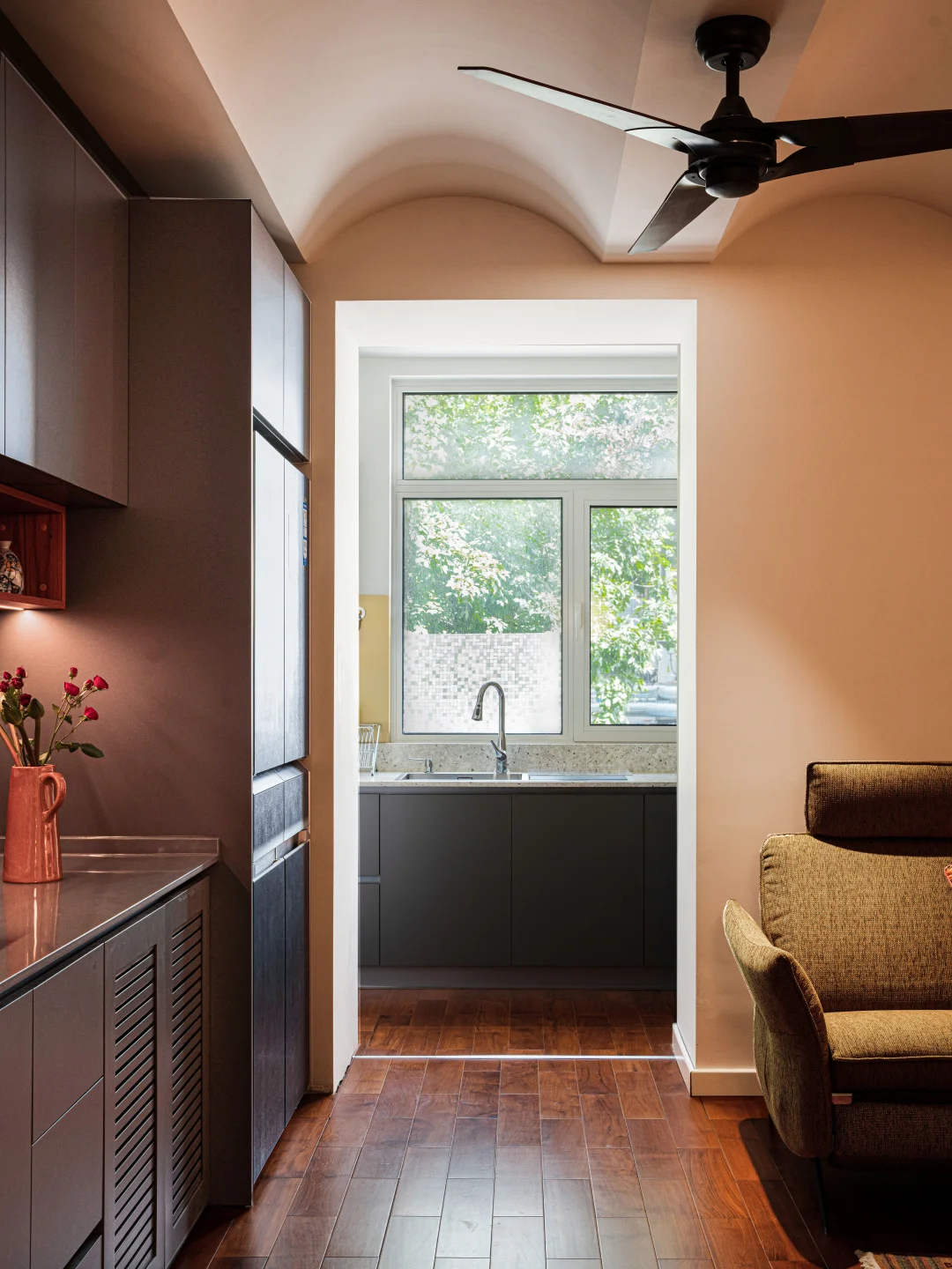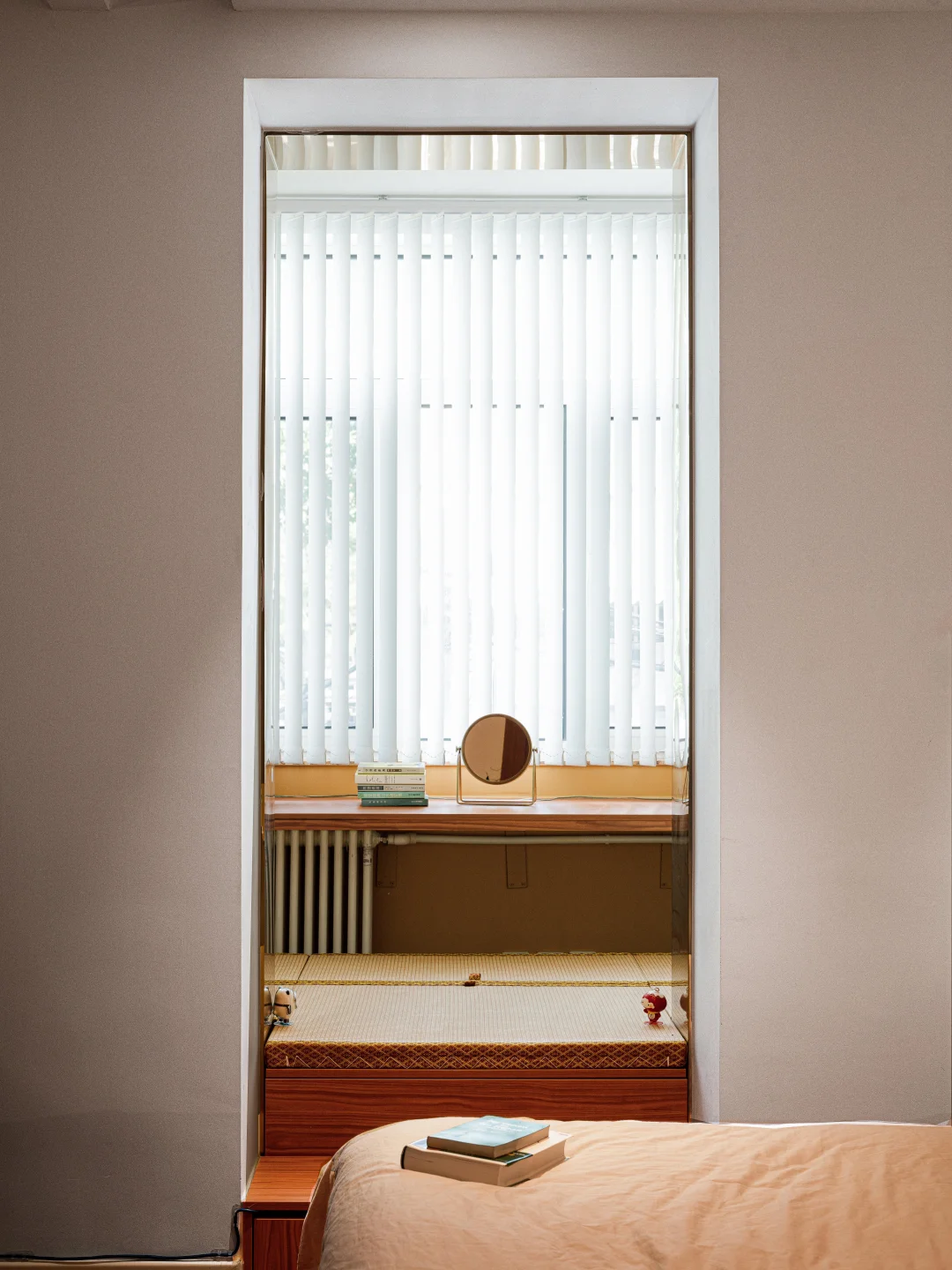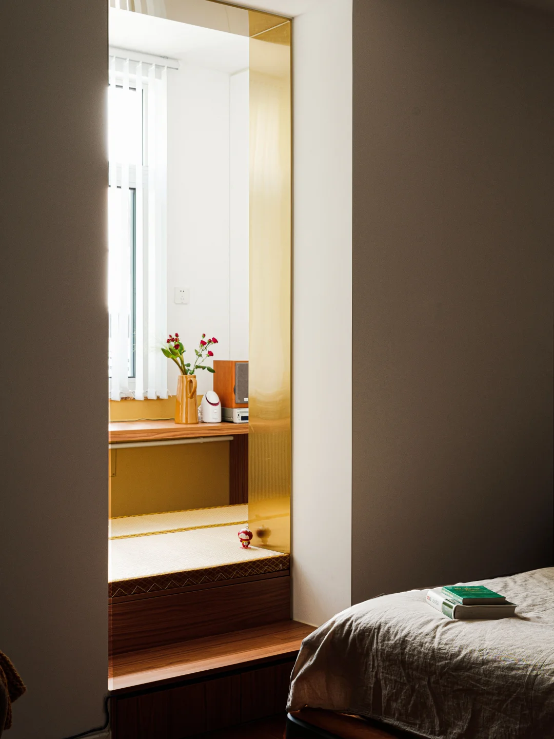 这是我们落地北京的家, 屋主非常喜欢中式的家具, 于是把爸妈家的老家具全都搬了过来 餐厅的中式博古架经过重新打磨、刷漆后, 完美地融入了新家,也有着自己独特的韵味, 我们还用中式屏风改的门来代替实体墙, 在打开、关闭之间切换不同使用场景, 打破了一成不变的封闭式格局, 如果你也不想要千篇一、美的雷同的家, 中西新旧混搭就是个不错的思路~