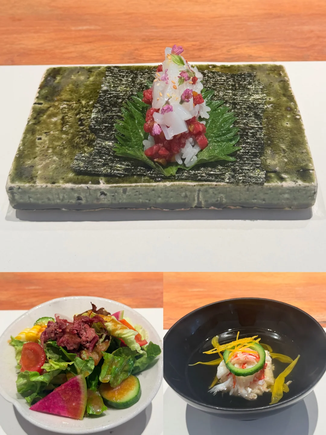 前菜的紫菜包裹着调味的和牛和鱿鱼口感很丰富!