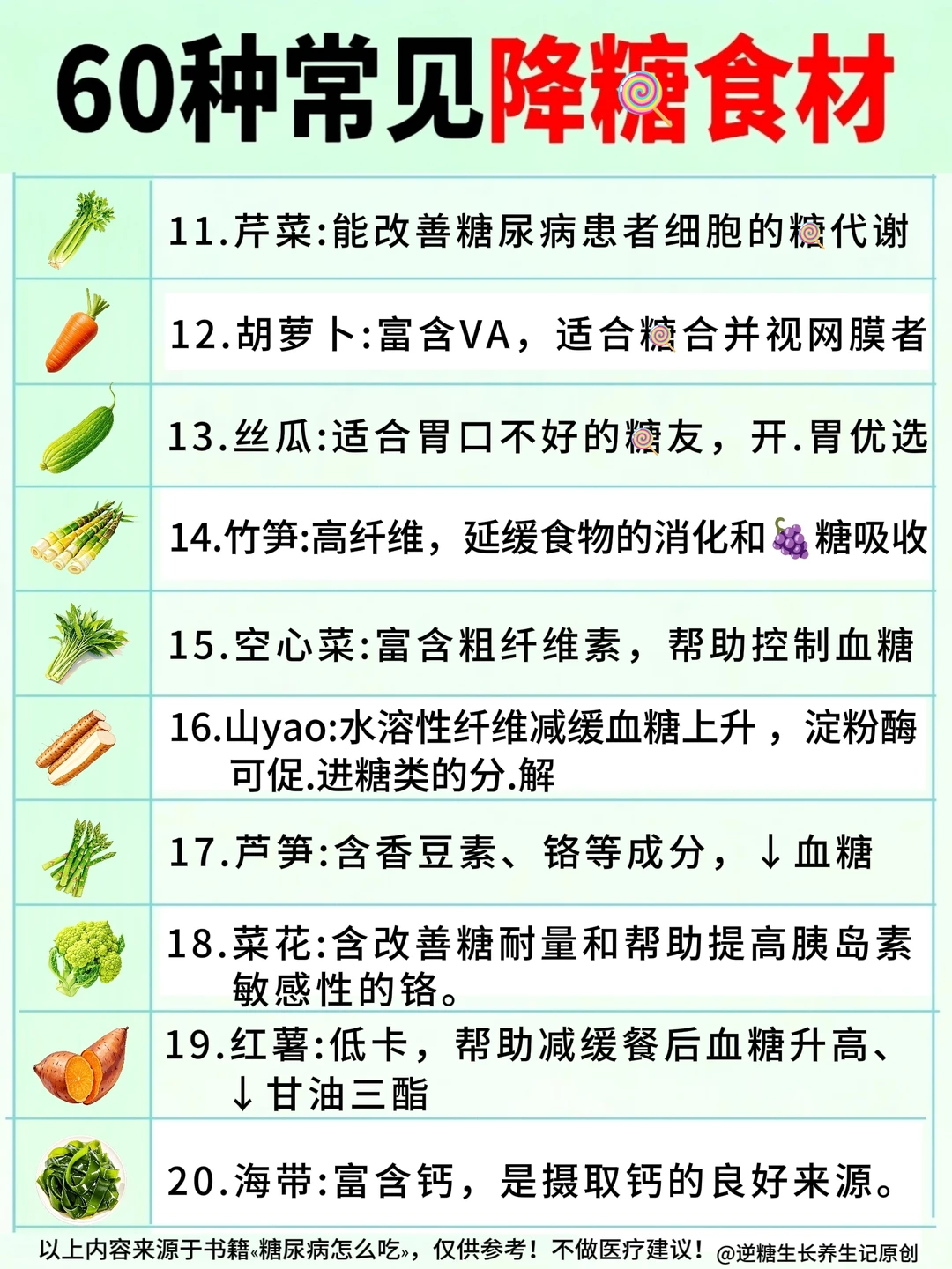 谁懂啊,糖友们!😭 血糖一飙就什么都不敢吃,外卖、甜品根本不敢碰,但越不吃越馋还容易低血糖… ✅直到发现了这60种天然控糖食材,才发现控糖也可以不用饿肚子! 🔎从主食、蔬菜到肉蛋、水果,都是我们身边能看到的食材,发现每种都具有控糖关键成分,新手小白也可以直接抄作业~ 👭不管是糖尿病人、备孕控糖,控糖减脂的姐妹,以上这份清单也都能放心吃! 以后再也不用纠结“今天吃什么,哪种食物不升糖”,照着选既饱腹,又能让血糖稳稳滴~