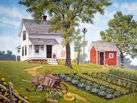 三夏田园无限美, 半江秋水映夕阳。 横批:《田园与秋水》