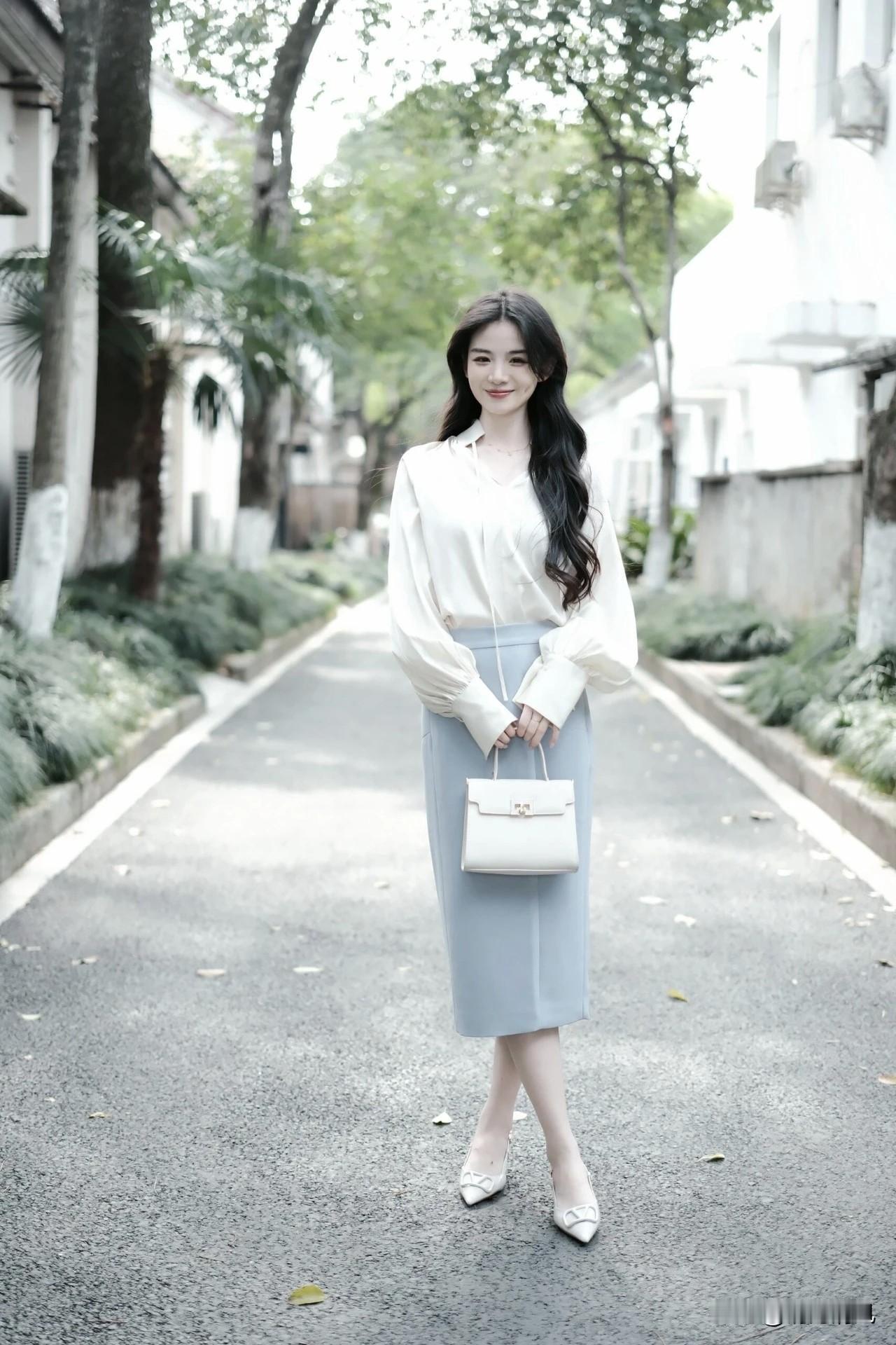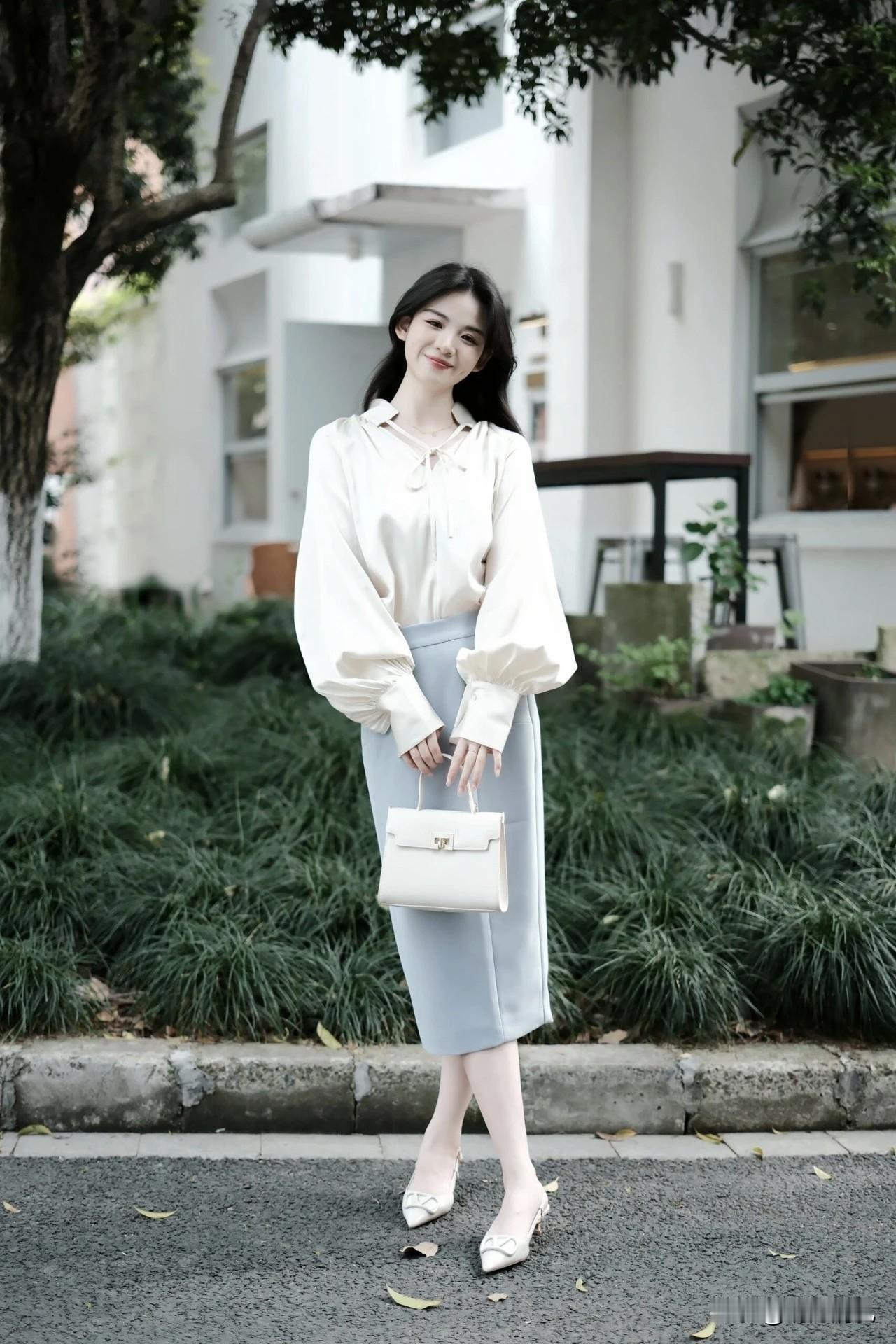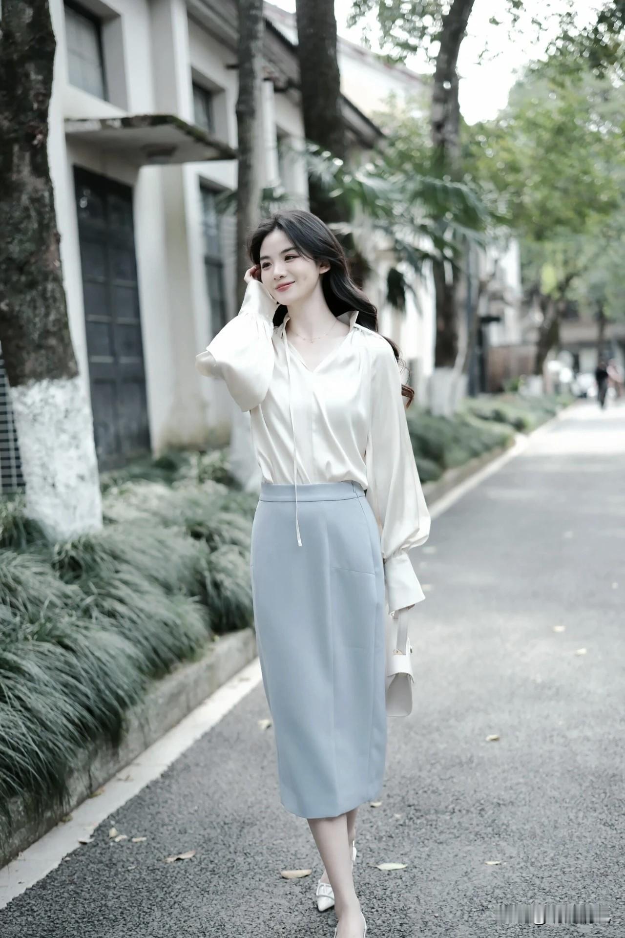 这组白蓝配色的穿搭,真是一眼清爽。白色上衣带点柔柔的光泽,像早上八九点的云;蓝色下装那种湖水的调调,整个人看着又安静又温柔。 发现这种干干净净的配色特别耐看,没有太多杂色,反而显得气质很舒展。想起之前总爱往身上堆颜色,现在倒是越来越喜欢这种“做减法”的搭配了。 都说穿搭是心情的镜子,这种清淡配色好像自带一种慢下来的氛围。不知道你们有没有同感?衣柜里最让你感到舒服放松的,是哪件颜色浅浅、质地软软的单品? 时尚穿搭