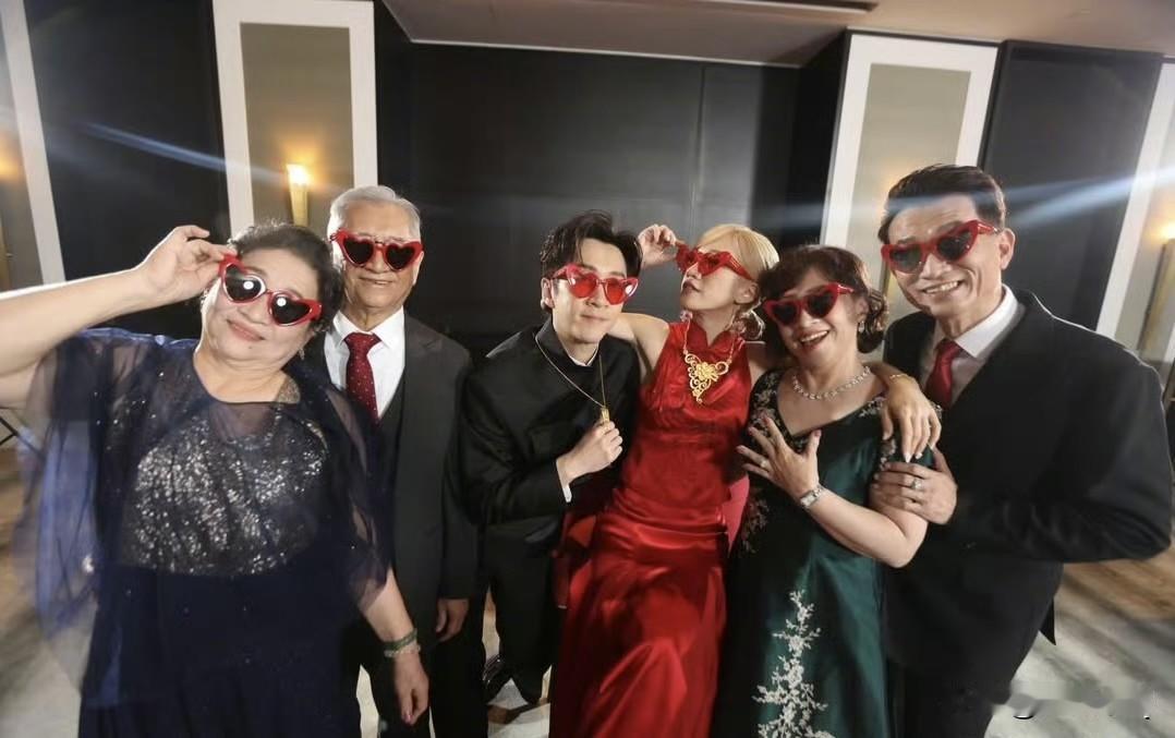 陈汉典和Lulu的婚礼照有一点比很多明星强,那就是带着父母一起在婚礼上搞怪拍照,轻松又有趣,氛围感多好啊。不像有些明星结婚,婚礼基本不晒父母的照片。