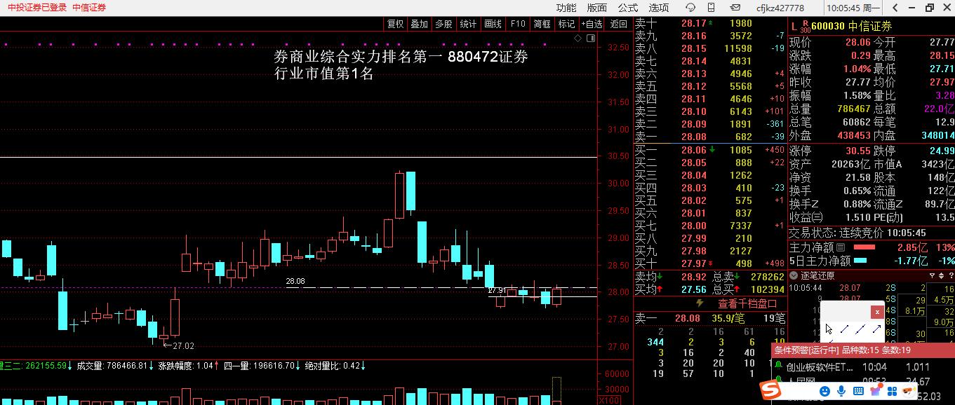 中信证券的28.08(图1)、东方财富的23.55(图2)海通证券的20.10(图3)、华泰证券的23.06(图4)中信建投的25.08(图5)、广发证券的22.78(图6)招商证券的16.83(图7)、国信证券的12.78(图8)申万宏源的5.18(图9)、中国银河的15.57(图10)以上券商前10大流通市值个股,周线明确走强的上线临界如图和价格全部标记,今天不看空,重点是证券是否出现合力