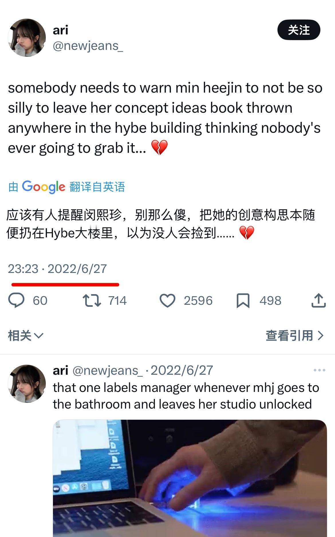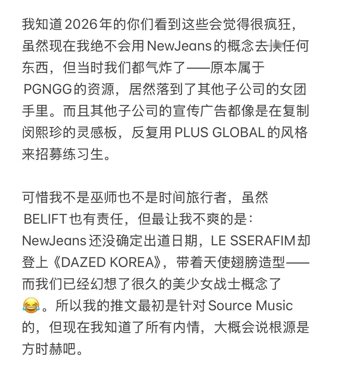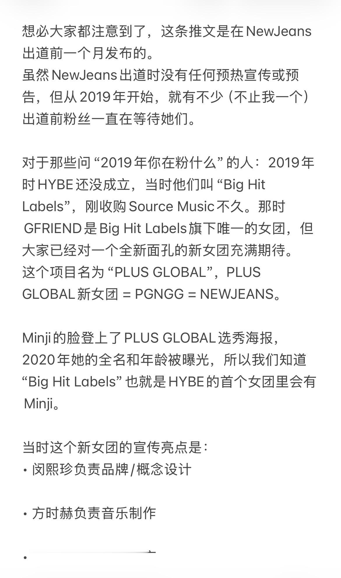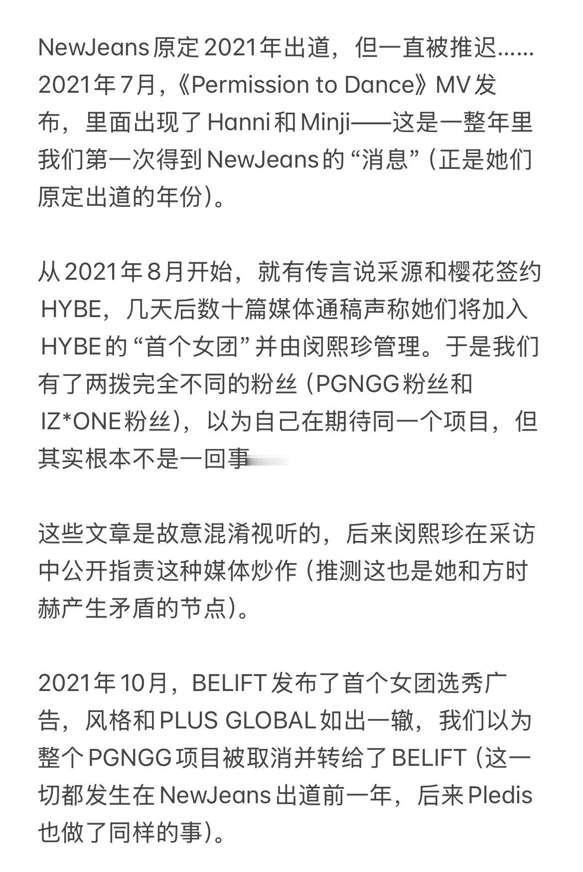 一个在newjeans出道前就预言了hybe会偷🧢创意的粉丝分享了当时她的想法⬇️另外,好奇的话可以去x上搜pgnggg标签,看看当时的情况:)cr.newjeans_
