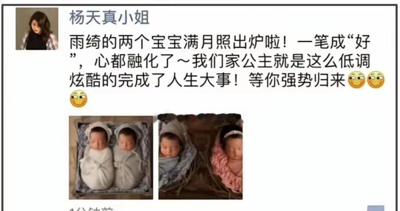 杨天真晒过张雨绮孕照这不都陈年老瓜了吗?真锤了张雨绮早就被fs了吧。最近网上说的那些,关于她的事,大家都看到了吧,一直在说,一直在传,也不知道真的假的,反正挺热闹的。我觉得吧,不信谣不传谣,而且杨天真之前还晒过张雨绮孕照还有宝宝满月照呢。