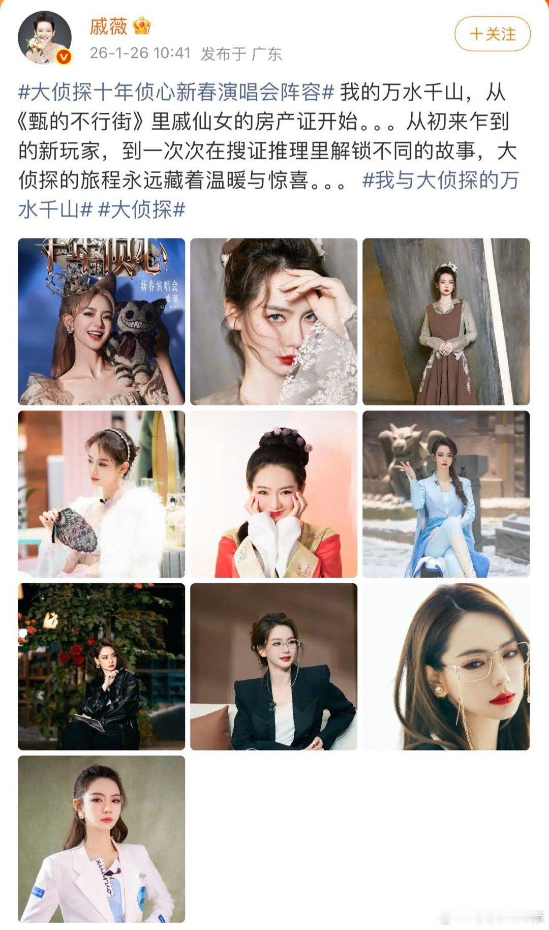 戚薇回忆戚仙女时期大侦探 翻开旧照,惊艳如初。从仙女到高能玩家,戚薇带来太多难忘瞬间。期待未来,她创造更多角色传奇!