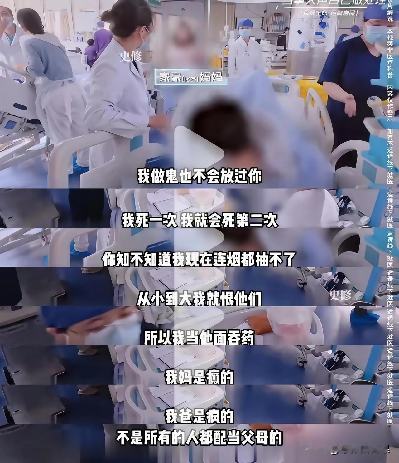 你们敢相信这句话是一个孩子对母亲说的话吗?“做鬼也不会放过你!” 19岁留学生刚从鬼门关抢救回来,睁开眼第一句话,居然是指着亲妈鼻子嘶吼! 在场的医生护士都看呆了——这哪是劫后余生的感恩,分明是淬了毒的怨恨! 到底是多大的仇多大的怨,能让儿子对救命的亲妈说出这种话? 说出来你都不敢信!就因为他在国外染上了毒瘾,爸妈掏空家底、卖房卖车给他还了一屁股债,断了他的钱不让他吸,他居然直接吞了50片安眠药,想用自己的命逼父母低头! 谁还记得,以前那个会抱着妈妈脖子撒娇、被全家捧在手心的小男孩?现在浑身长满毒疮,瘦得只剩一把骨头,连路都走不稳,眼里却全是对父母的恨意,嘶吼着“我恨你们一辈子”。 这哪里是什么青春期叛逆,分明是被毒品啃光了人性、嚼碎了良心! 多少家长拼尽全力、砸锅卖铁送孩子出国,以为是让娃去“镀金”,能鲤鱼跃龙门,却忘了异国他乡没有父母的管束,鱼龙混杂的圈子、随处可见的诱惑,分分钟就能把一个好孩子拖进万劫不复的泥潭。 等到卖房还债、四处求人,等到孩子变成连亲人都认不出的“魔鬼”,才幡然醒悟:所谓的名校光环、锦绣前程,在“平平安安做人”面前,根本不值一提!